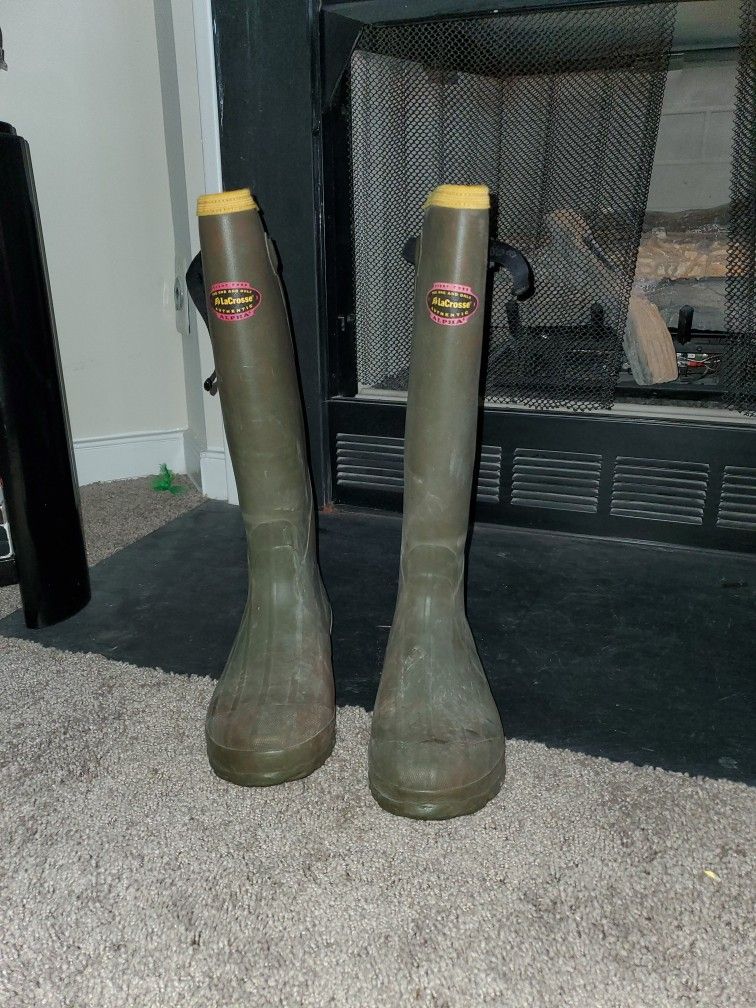 Used lacrosse alpha size 10 rubber boots. Good shape. No returns. See pictures. Ask questions.