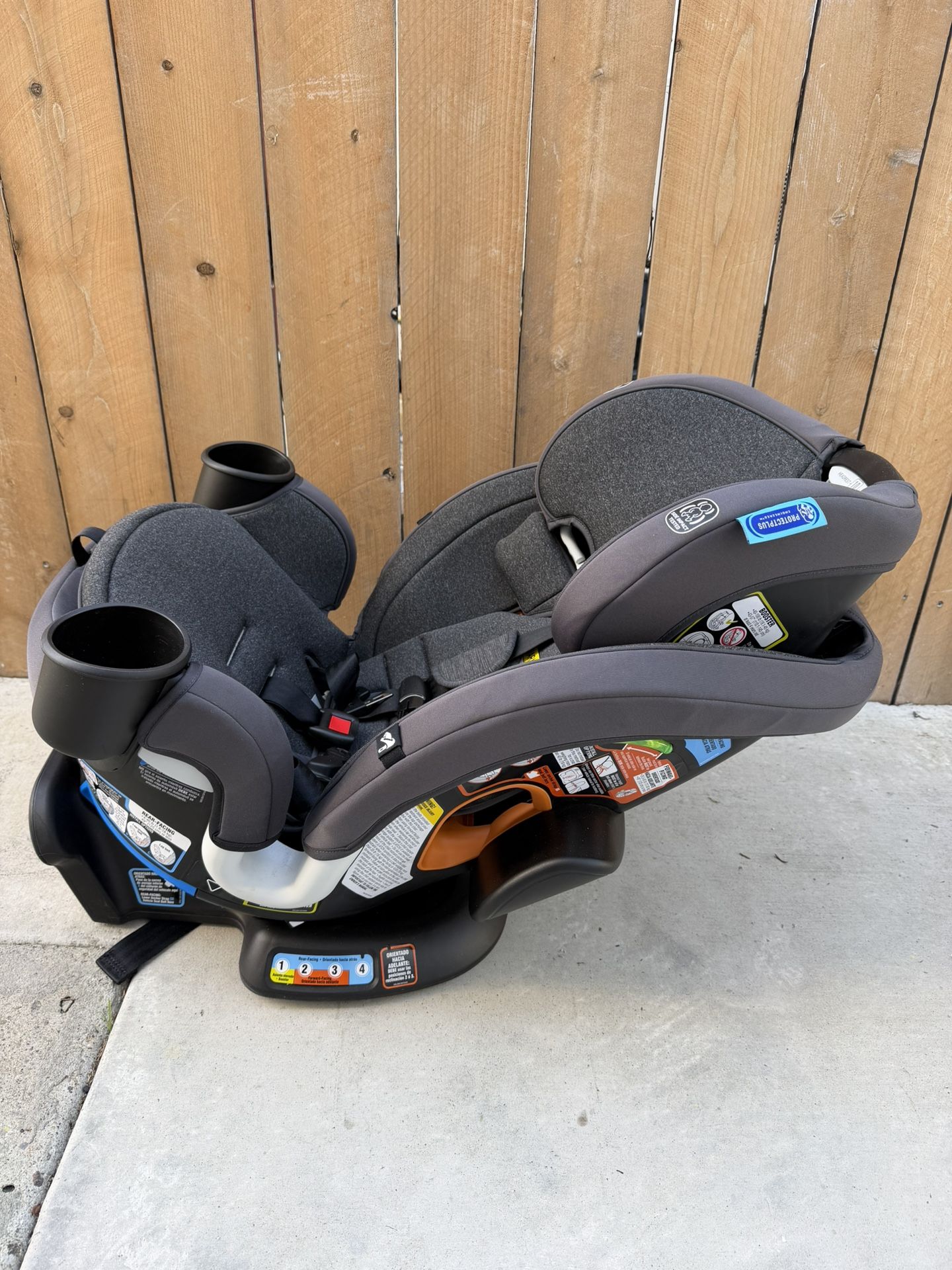 Used a few times! Like new Rear-Facing Rotation, Forward-Facing Mode, Highback Booster Up to 100 lbs, Adjustable Headrest & Harness, Steel Reinforced Frame