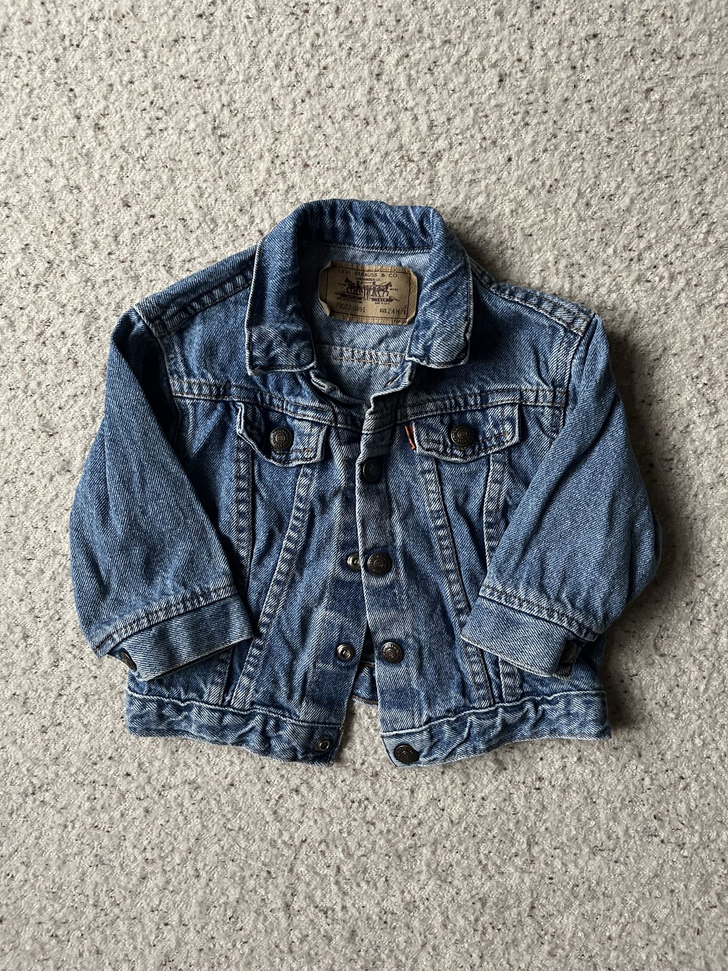 Classic Levi’s baby denim jacket in a medium wash with signature button front. Details: • Brand: Levi’s • Size: 24 months • Classic trucker style • Button front closure • Two chest pockets with button flaps • Medium wash denim • 100% cotton Condition: Great pre-owned condition. Payment: Venmo or cash only. Pick up in Everett.