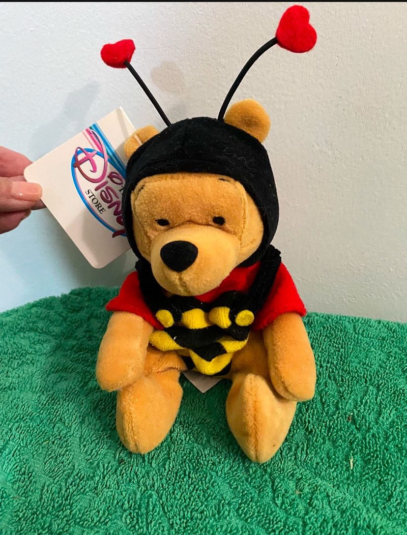Winnie the Pooh Valentine Bumble Bee Hearts Wings Disney Plush Animal Small 8" from 2000 $25