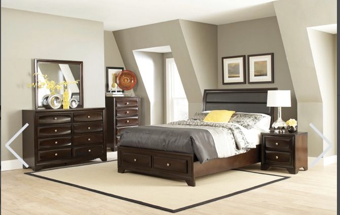 Brand new, unboxed Queen bed. Beautiful sophisticated bed in a cappuccino shade!Wear house pricing! Delivery and installation included.