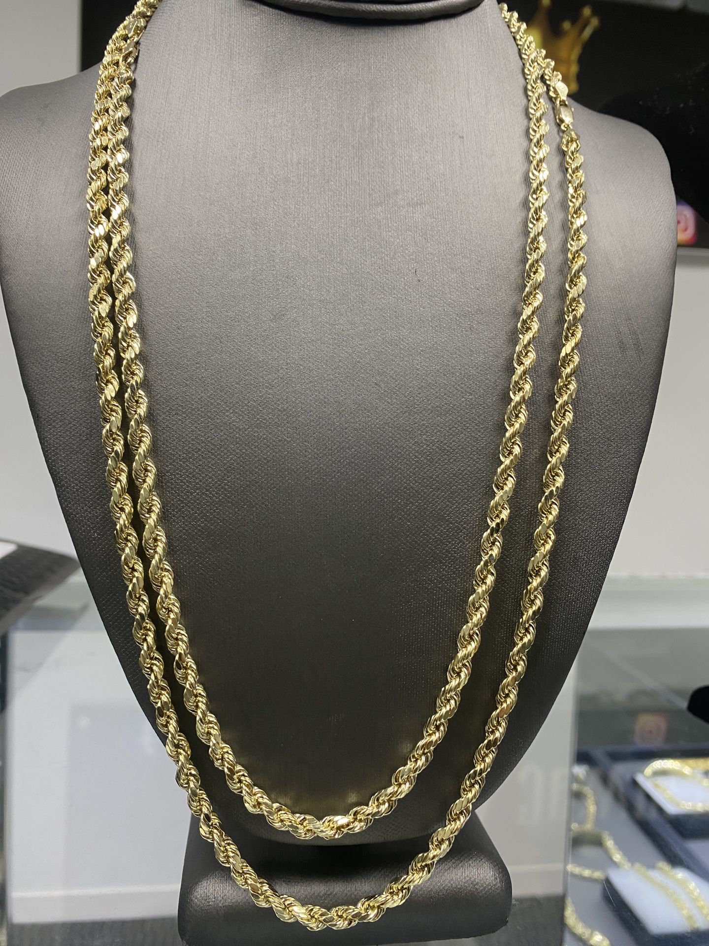 10k gold rope chains 5mm thick 24”-26” long in stock