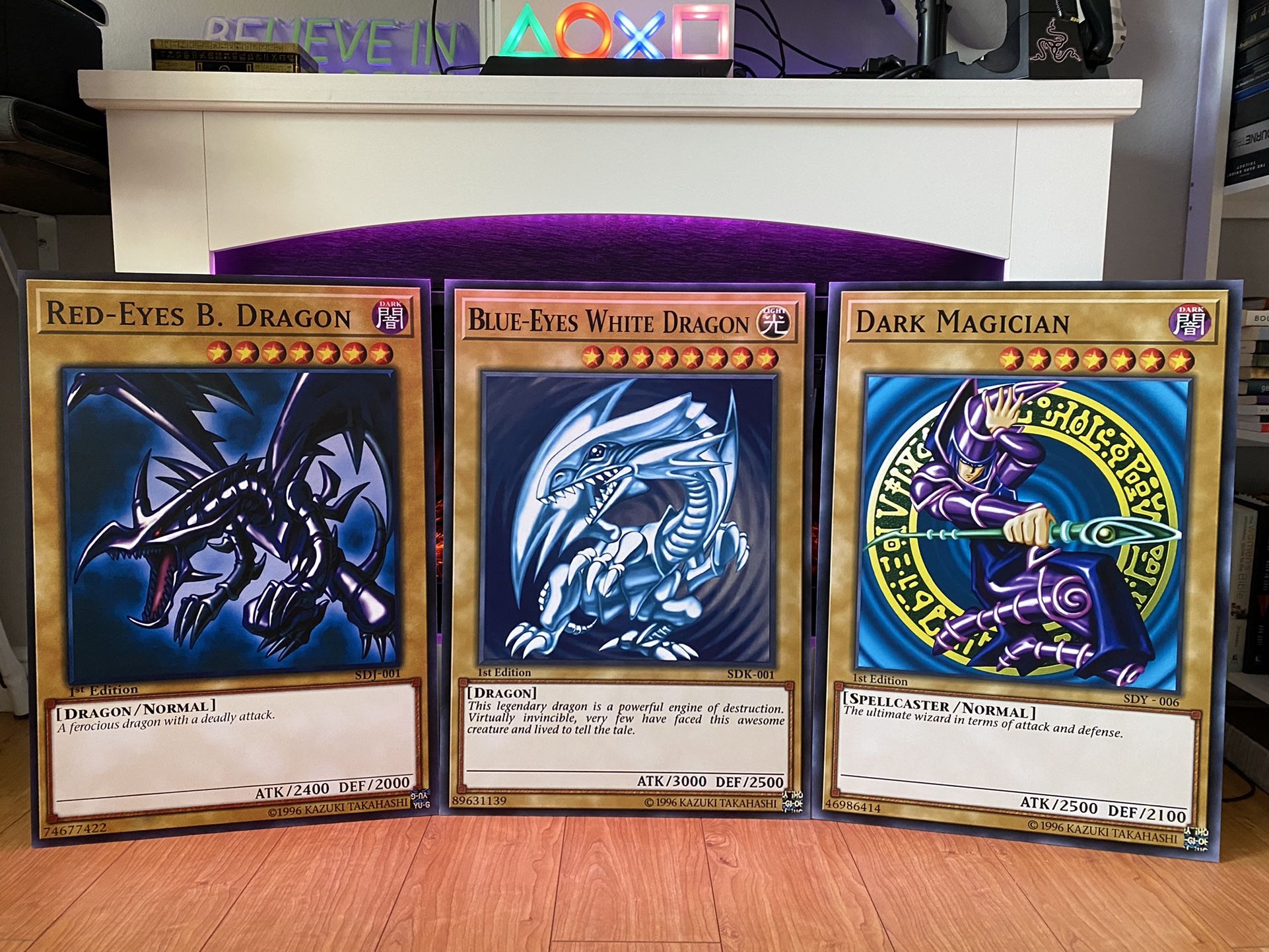 Jumbo TCG Cards! Yugioh, Pokémon, MTG 18x26 inches digitally printed on high quality foam board, double sided full color. Made to order: Blue Eyes White Dragon Dark Magician Red Eyes B Dragon Dark Magician Girl Charizard Pikachu Blastoise Black Lotus Want a specific card? Let me know what you’re looking for