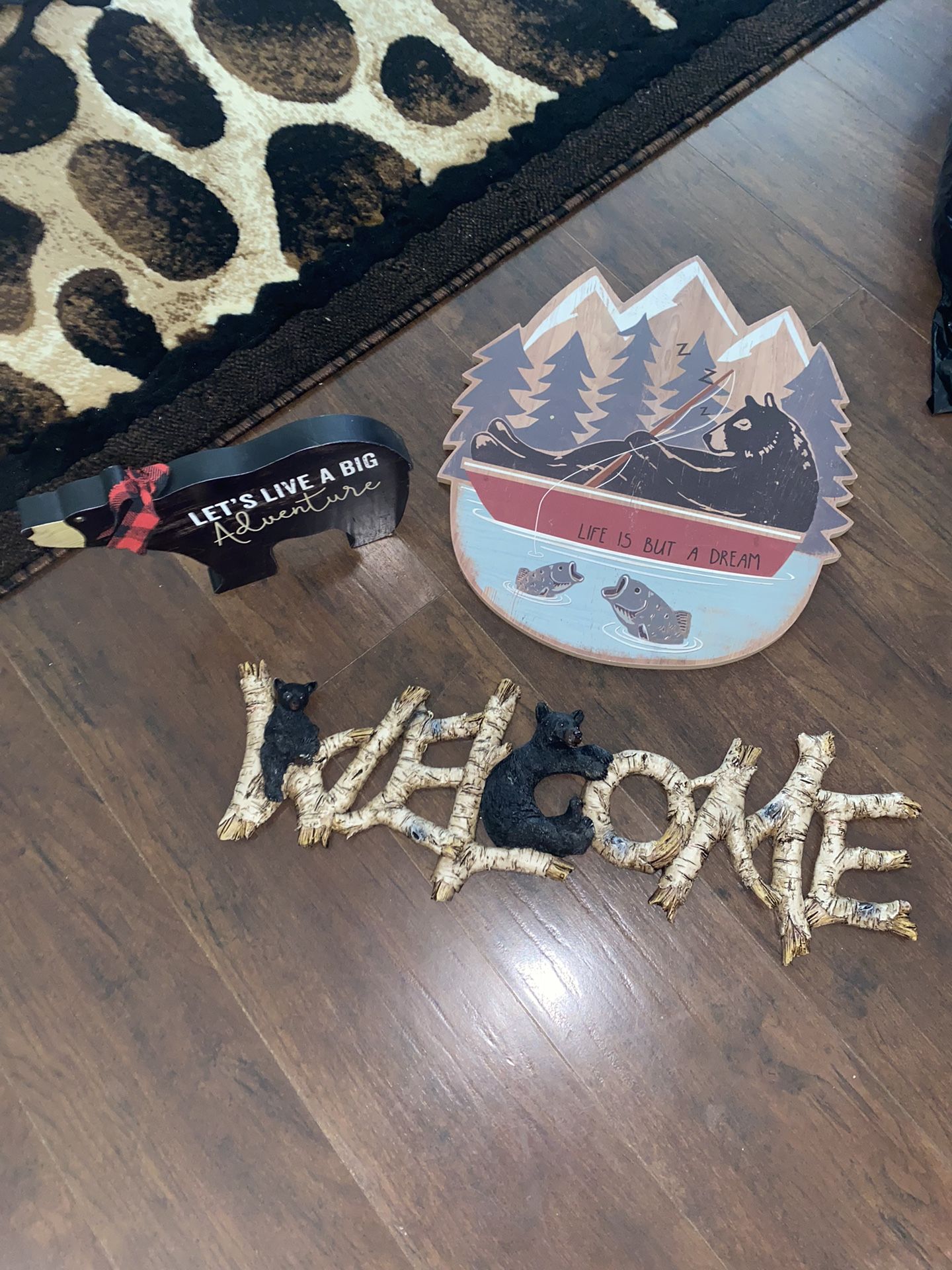 , deer antlers and bear sign for wall Wall sign life is but a dream And cute bear stand up decor Comes as bundle Check out other stuff if you like this I can give you a bundle deal if you like some of my other items