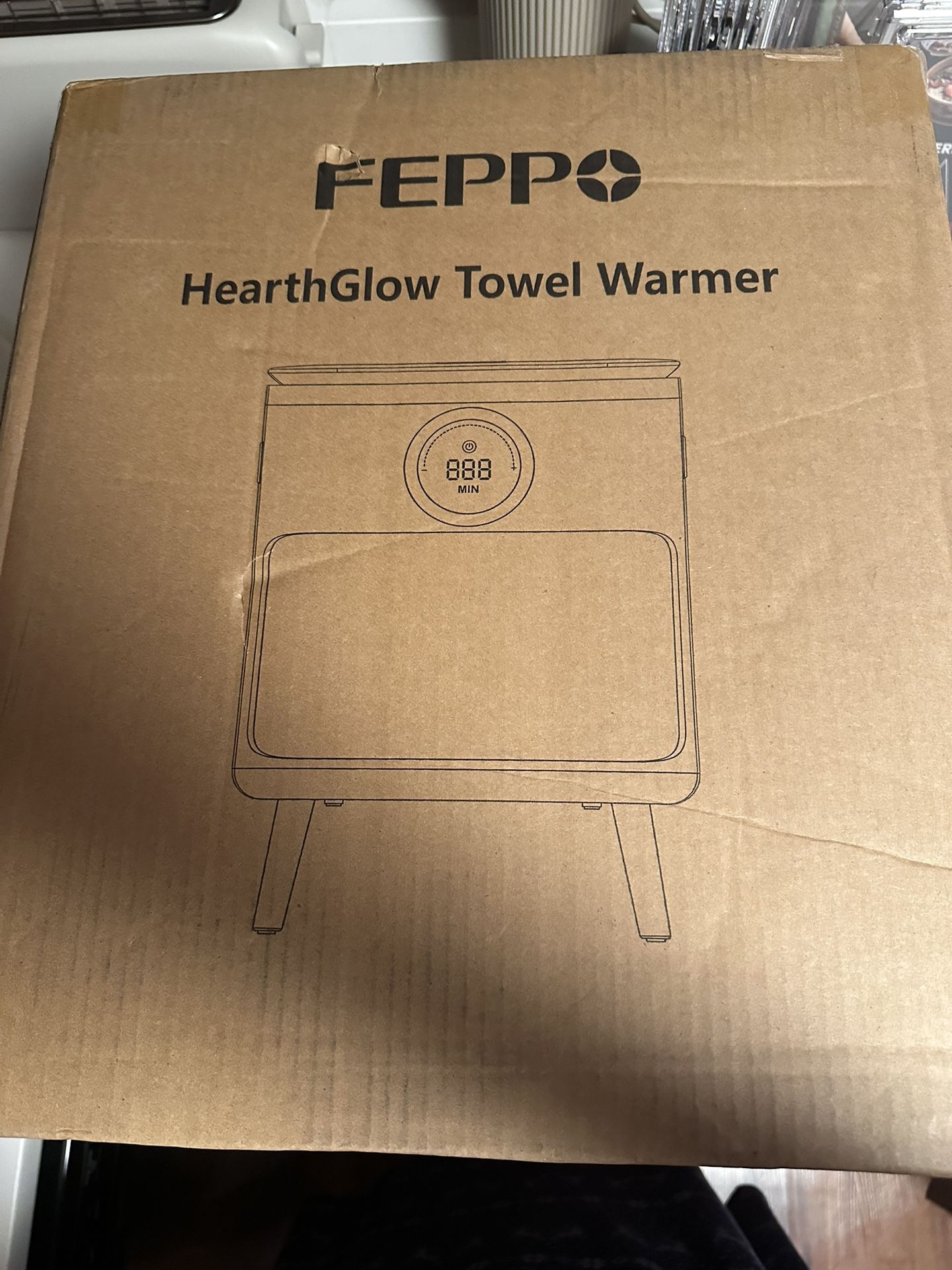 NEW never used towel warmer. Purchased it on Amazon for $200. 23 L large capacity. Has a HearthGlow digital display on the front of a fireplace. It has a rotary timer control with LED countdown. Perfect for towels, pajamas, blankets, bathrobes, socks. Comes with legs that you can attach or not. Has never been used, from a smoke free pet free home. Cash only and pick up only please. I am in Lakeview East near Broadway and Belmont.