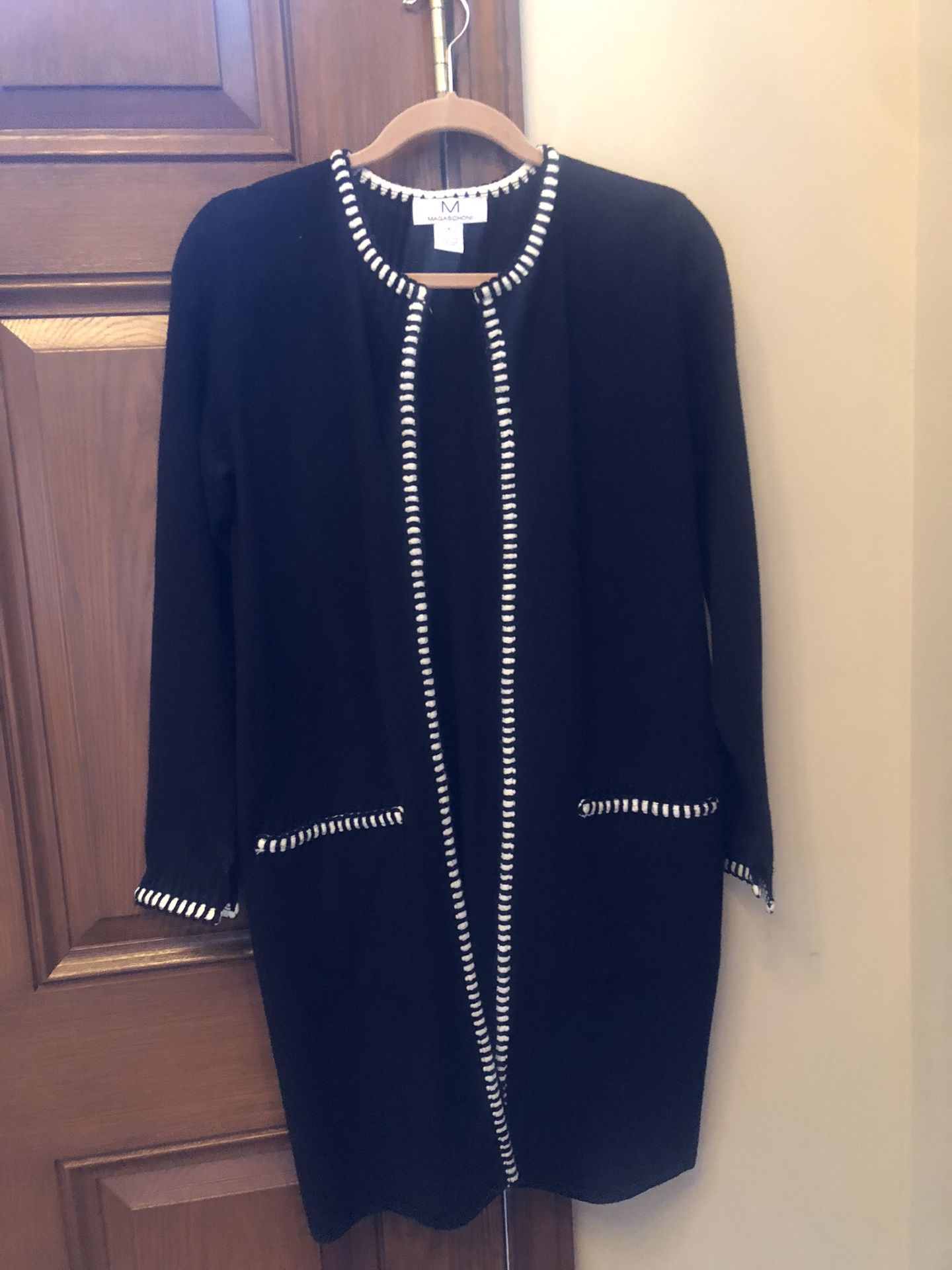 A stunning black open front cardigan with front pockets. Perfect with jeans, slacks or skirts. Size S. Very good condition. Pet fee and smoke free home.