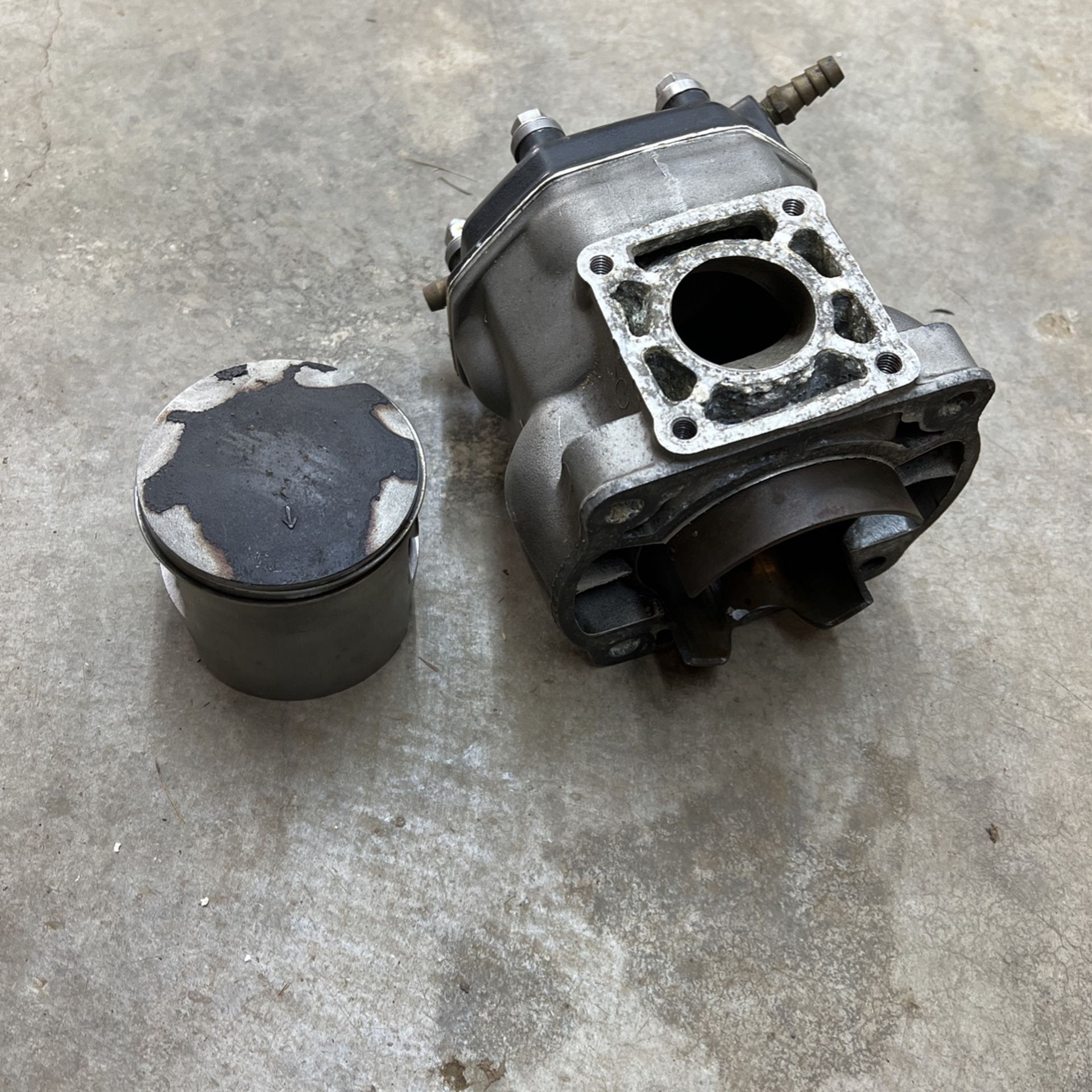 Built for the worlds in lake Havasu in the early 90’s and never ran. It’s sleeved and bored well over factory. I think it’s in the 340cc range. Piston measures 76.26mm. The cylinder is aggressively ported and shows little sign of wear. This was never raced due to rule change back in the day. It will fit on a JS300 or 300SX Kawasaki.