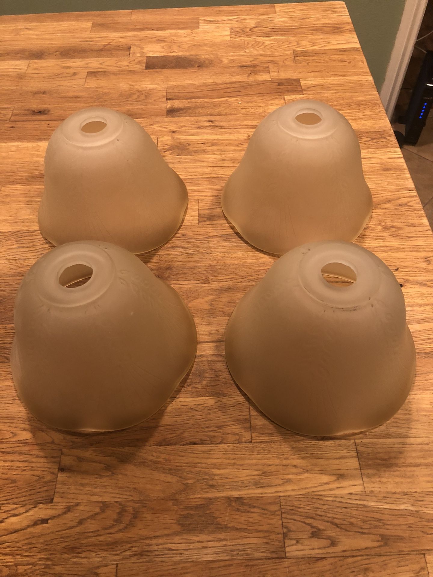 Up for sale are 4 glass shades for your ceiling fan. These are very unique and are bell shaped and kind of resemble a flower. It also has a nice design. Please feel free to contact with any questions. Thanks