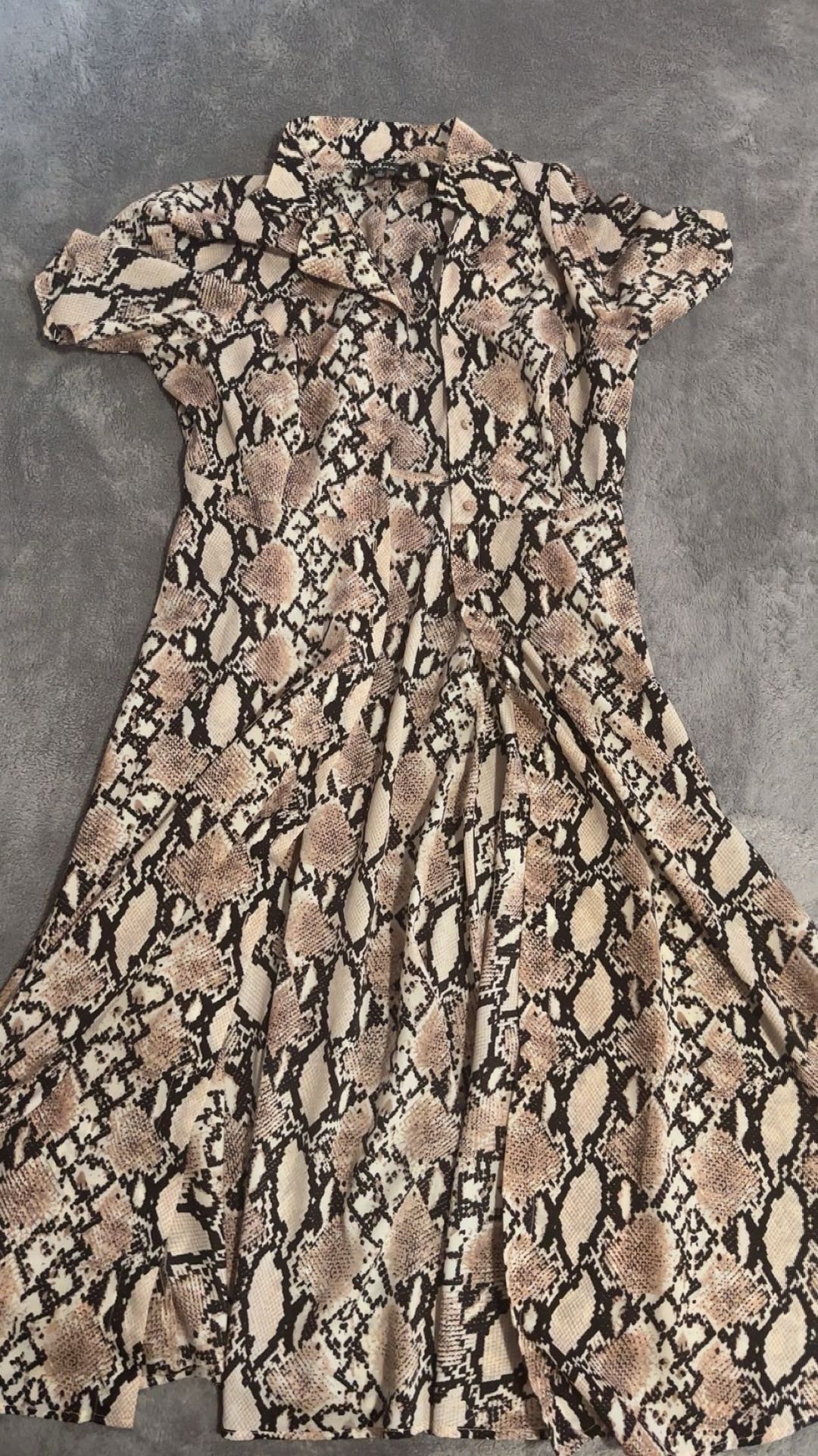 New, Never worn. This dress is really cute, and flows beautifully, I just don’t wear animal print so it’s not for me.