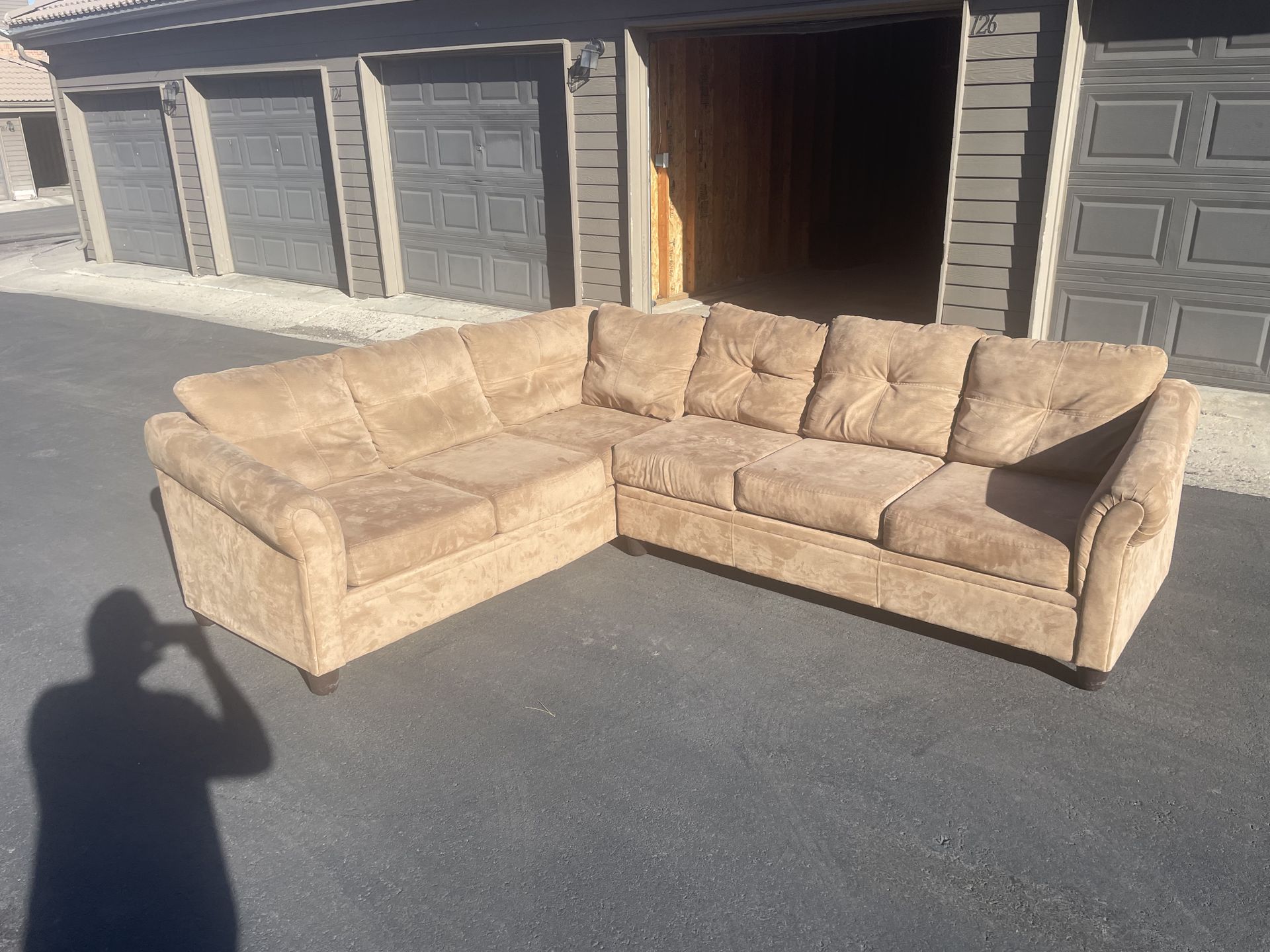 Two Piece Sectional Couch 84 inches by 102 inches Will deliver for a fee Pet friendly household