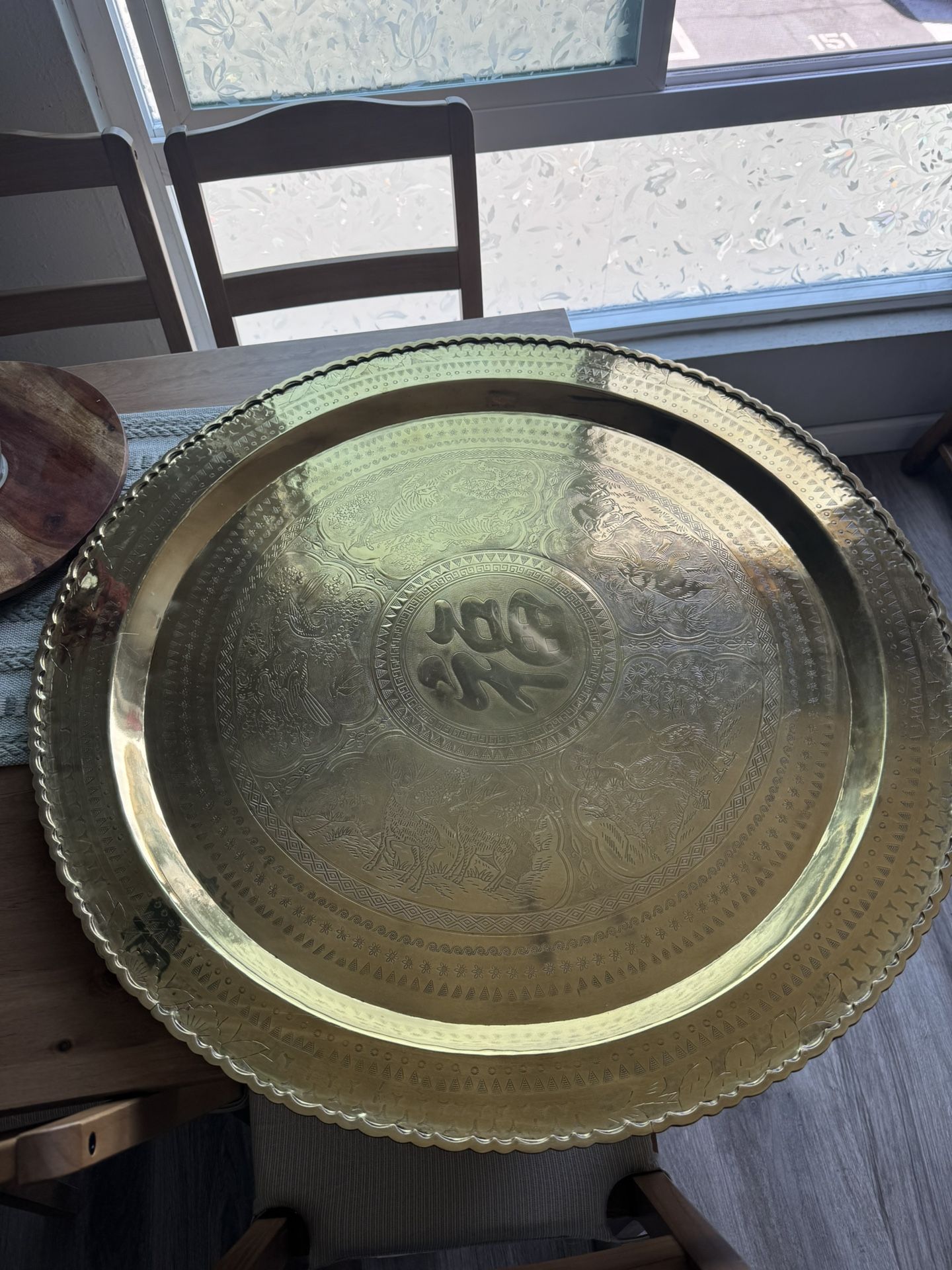 Vintage Brass Tray Etched Table Top Tray / Wall Hanging Brass Lg Tray