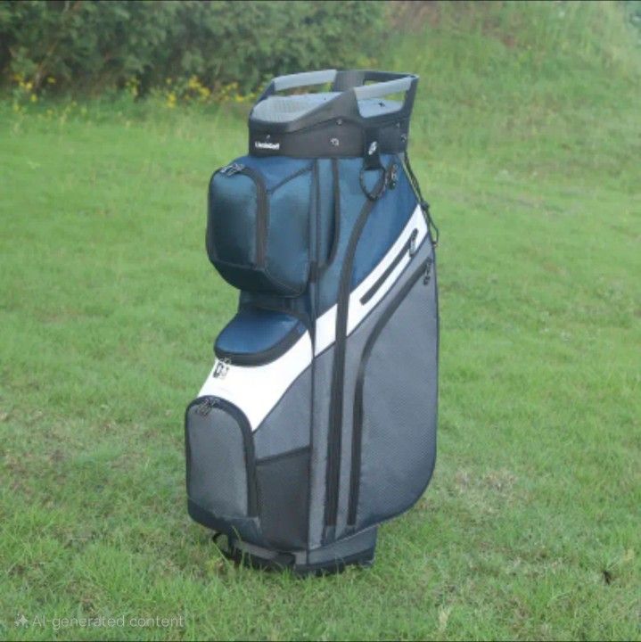 The Livsin 15-Way Premium T-Lock Golf Cart Bag with Handles & Rain Hood is a high-quality and spacious golf bag designed for men. Made with durable canvas trim and waterproof nylon material, this large-sized bag features 14 dividers to keep your clubs organized and protected. The bag comes in a stylish blue, gray and white color with adjustable straps and a zip closure for easy access. With features like a divider system, shoulder strap, and ergonomic handle, this golf bag is lightweight, padded, and designed for comfort and convenience during your golfing adventures.