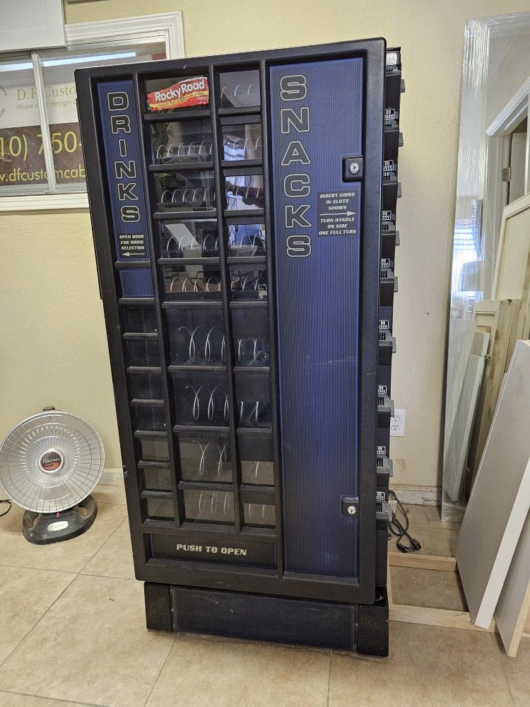 Fully functional vending machine. Snacks on the front door and drink inside the door. The refrigerator works great, keeping drinks cool.