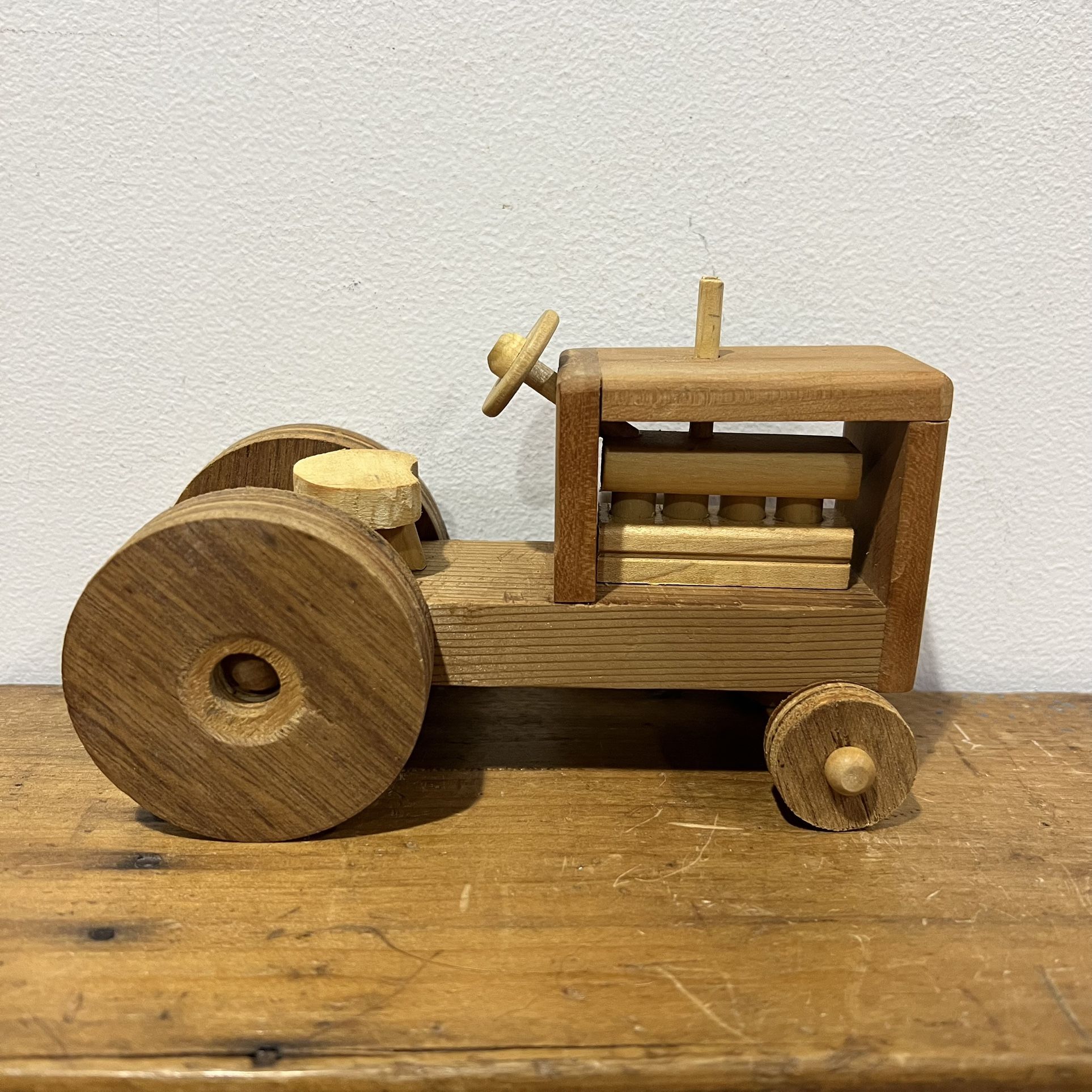 Vintage Handmade Tractor Wood Collectible Wooden Toy 2012 Discover the charm of a vintage wooden tractor, a testament to timeless craftsmanship and the joy of playful nostalgia. Meticulously handcrafted in 2012, this collectible toy merges the warmth of wood with the rustic appeal of a classic tractor design, offering a delightful addition to any collection or a heartwarming gift for someone special. With attention to detail that captures the essence of its engine, steering wheel, seat, wheels and smokestack, this piece embodies the beauty of yesteryear's workmanship. It's not just a toy, but a piece of art that celebrates the legacy of farm vehicles and the imaginative world of diecast and toy collections. Marked on the bottom: NOT A TOY - 2012 Wheels move nicely! Approx - 6 1/2" x 3 1/4" x 4"T $15 + $6 Pickup available in Algonquin #1