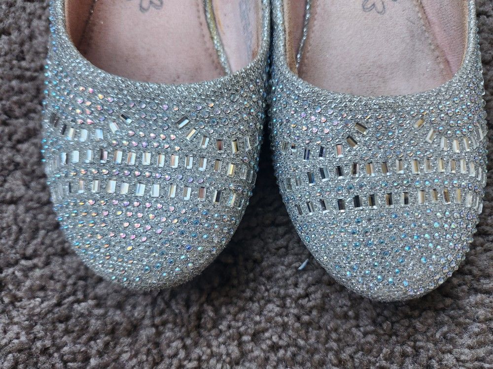 Size 4 Flats Sparkling Sparkly Shimmer Silver
