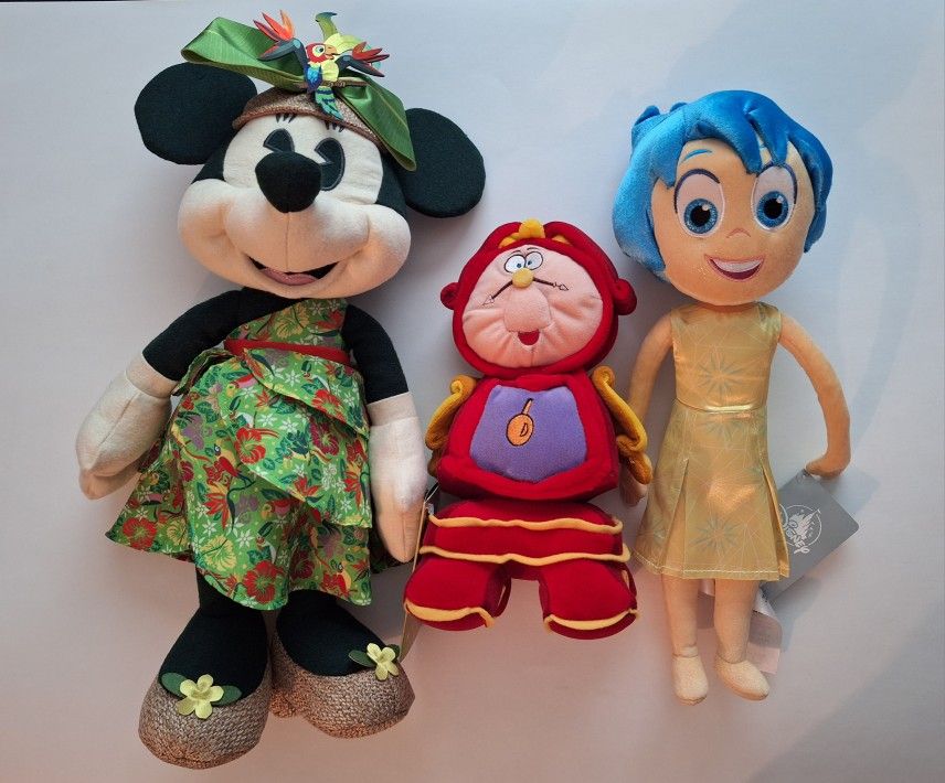 Various Disney Plush Stuffed Animals Minnie Mouse Main Attraction Tiki Room Joy Cogsworth