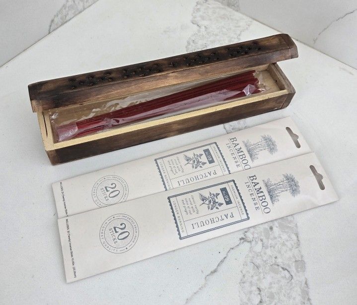 Carved Wood Insense Storage Box plus 50 insense sticks