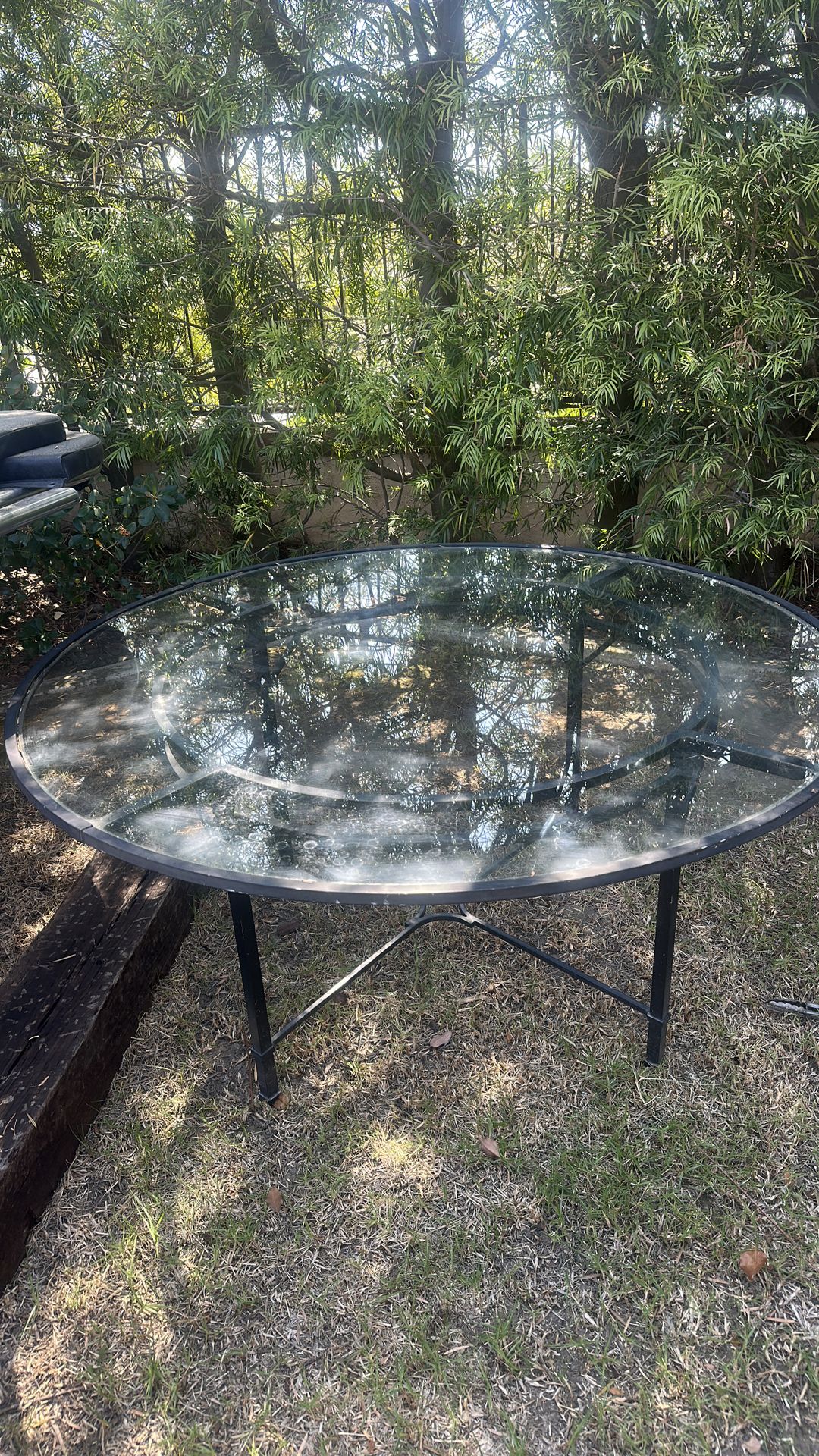 Outdoor Glass Patio Table – Good Condition FREE sturdy outdoor glass patio table in good condition. The frame is solid and the glass top is intact with no cracks. It’s been kept outside, so it could use a good cleaning to really shine again, but overall it’s in great shape and ready to use. Perfect for a patio, backyard, or balcony setup. Feel free to message me if you have any questions or want to come check it out!