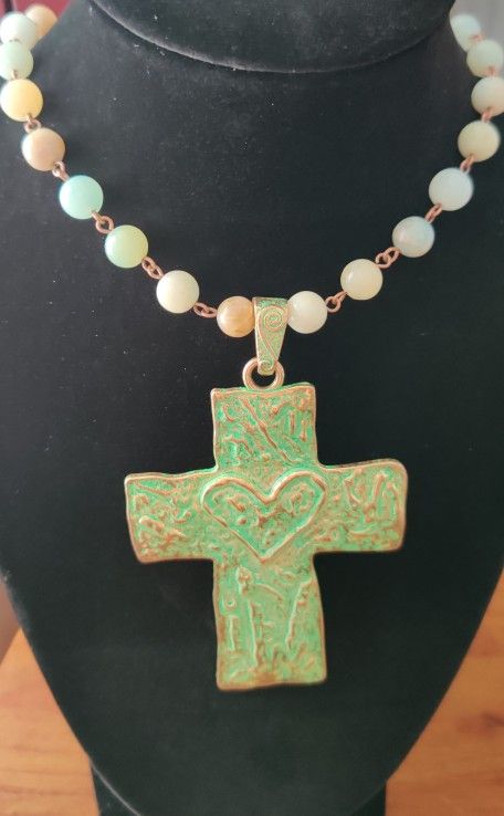 Cross And Amazonite Bead Necklace (Lowered Price)