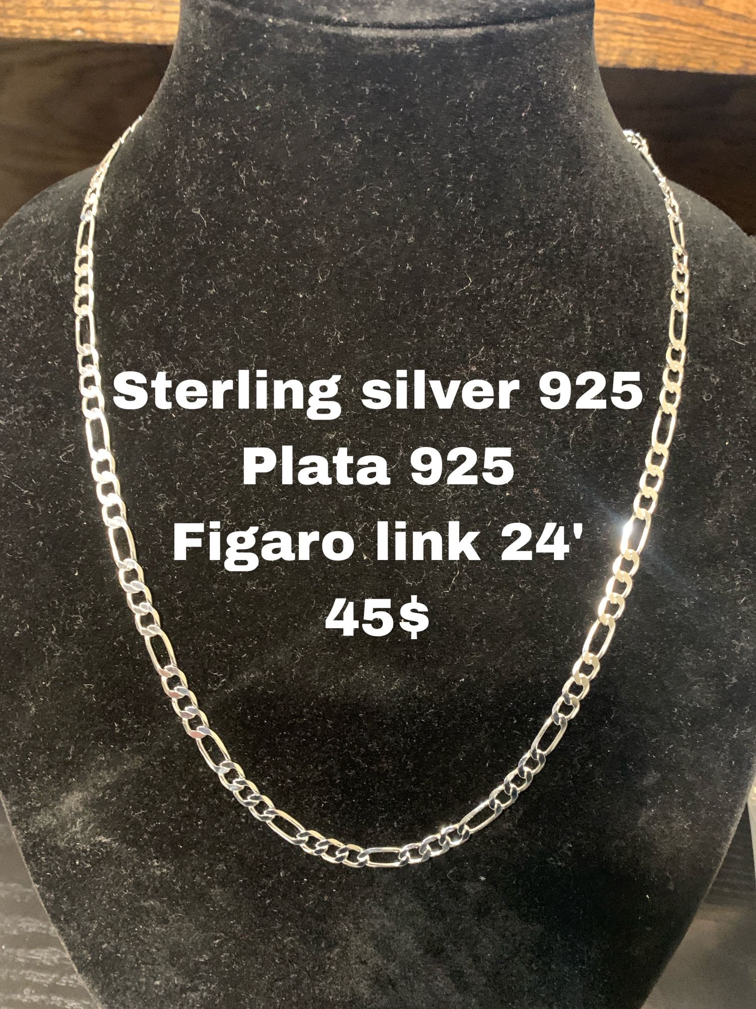 Sterling Silver 925 24 Inch Figaro Link Necklace 45$