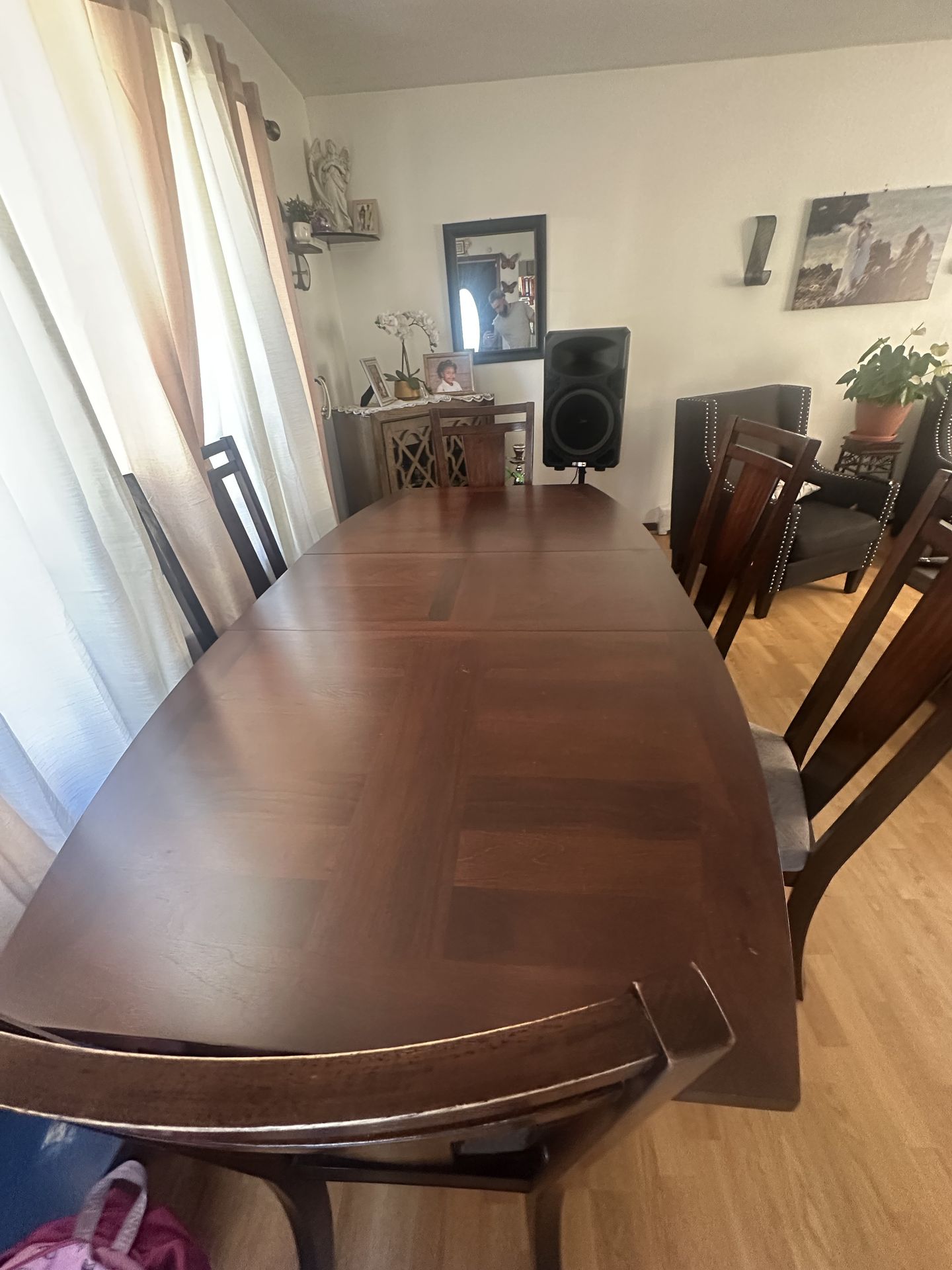6 chairs and the table. Good conditions as you can see in the picture. We bough it at Raymond and Flanigan few years ago. I’m selling it because we wants to buy an small one. Negotiable.!!!