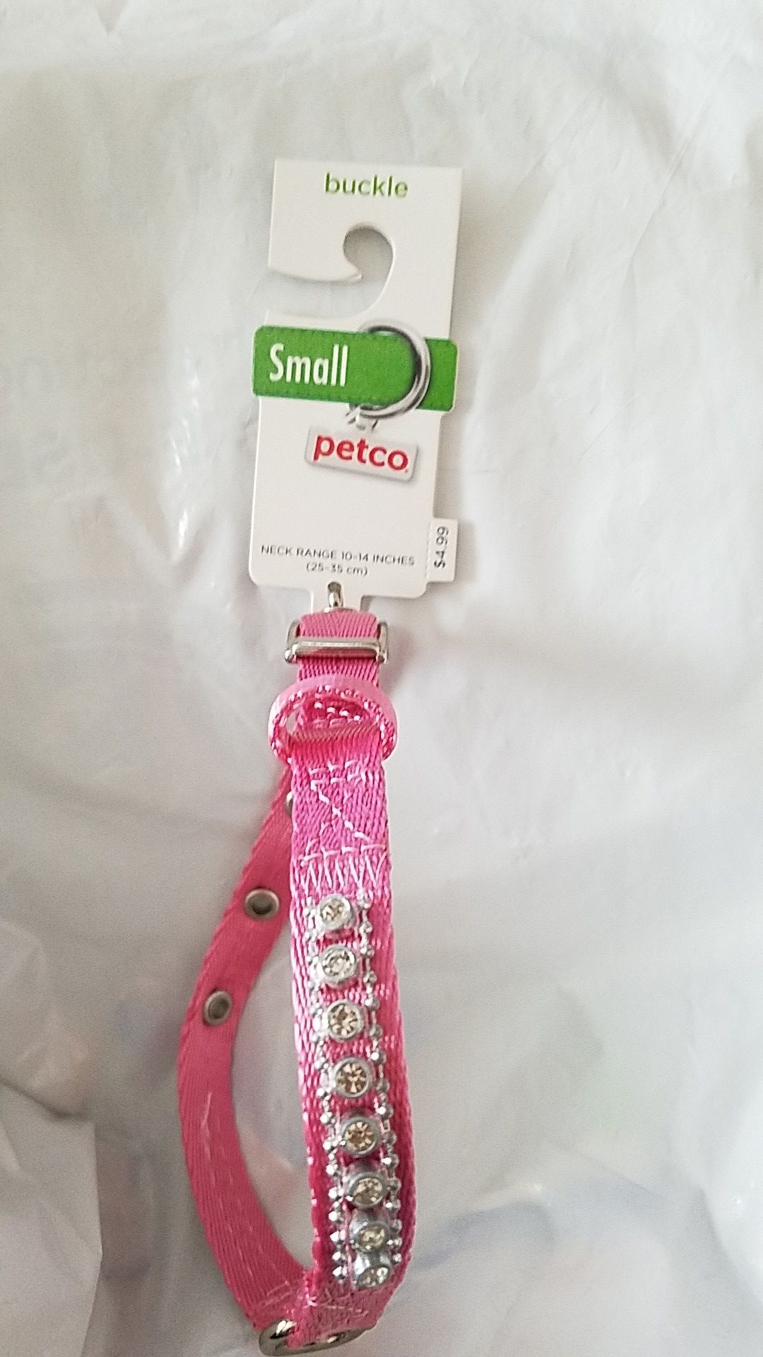 New never used with tags Small Pink dog collar with clear rhinestones. Neck range 10-14 inches. (25-35 cm)