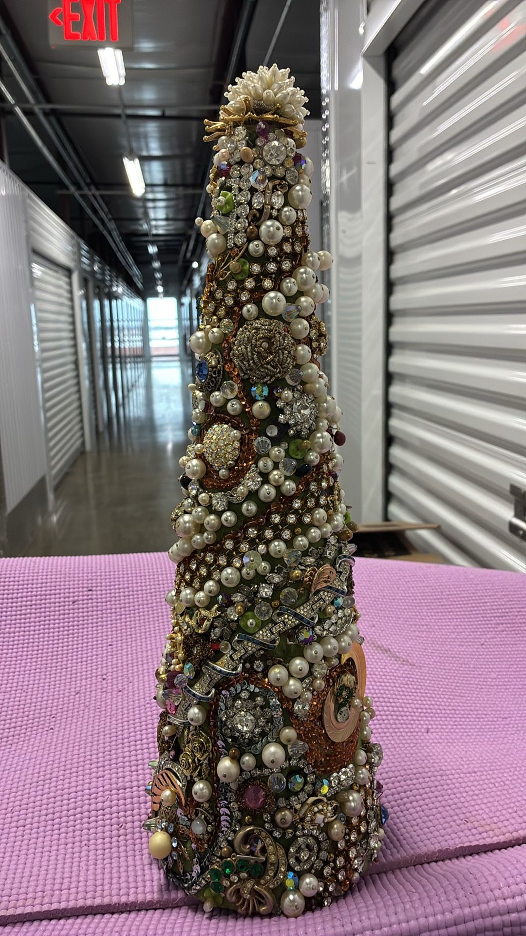 17”….high stunning jeweled Christmas tree wide assortment of vintage costume jewelry beautiful Moving…must sell  $179…obo thank you for looking
