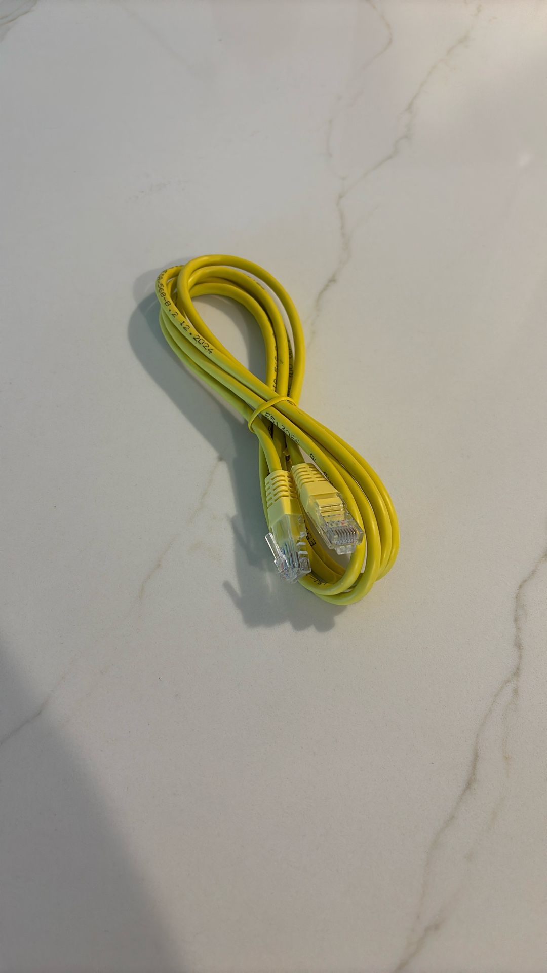 Cat6 Ethernet patch cable with RJ45 connectors.