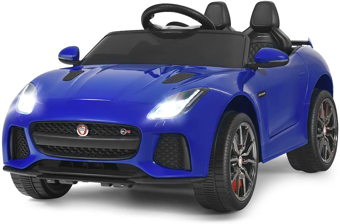Two Modes: When you babies are too young to drive the car by themselves, parents/grandparents can use the 2.4G remote control to control the speed (3 changeable speeds), turn left/right, go forward/backward and stop. When they are old enough, your babies can operate the car individually by the foot pedal and steering wheel. Cool Licensed Ride On Car: This officially licensed Jaguar F-type ride on car has a cool and stylish appearance along with headlights and horns. Featuring dual exhaust pipes and mirrors, it greatly imitates the real car. Besides, double-door opening design makes it easier for babies to get in and out smoothly. Multifunctional Design for Riding: The car is able to move forward and backward as well as change the speed. It can be connected with MP3, TF and USB devices to help kids learn and enjoy stories and music while riding. In addition, the volume also supports up and down, which is suitable for kids to use and entertain. Considerate Secure Design: Equipped with an intelligent slow start device to effectively prevent accidental injuries caused by sudden acceleration or braking. Wear-resistant wheels with shock absorb design ensure that the car rides smoothly and safely on the road. Multi-point seat belt design reduces inertial injuries, which ensures the safety for kids. ASTM CPSIA CEC certificated. Desirous Gift to Little Drivers: Cool and stylish design can easily get baby's attention, which is a dream gift for birthday or holiday. It is convenient to carry to any place with the portable handle, allowing kids to experience the pleasure of riding at any time.