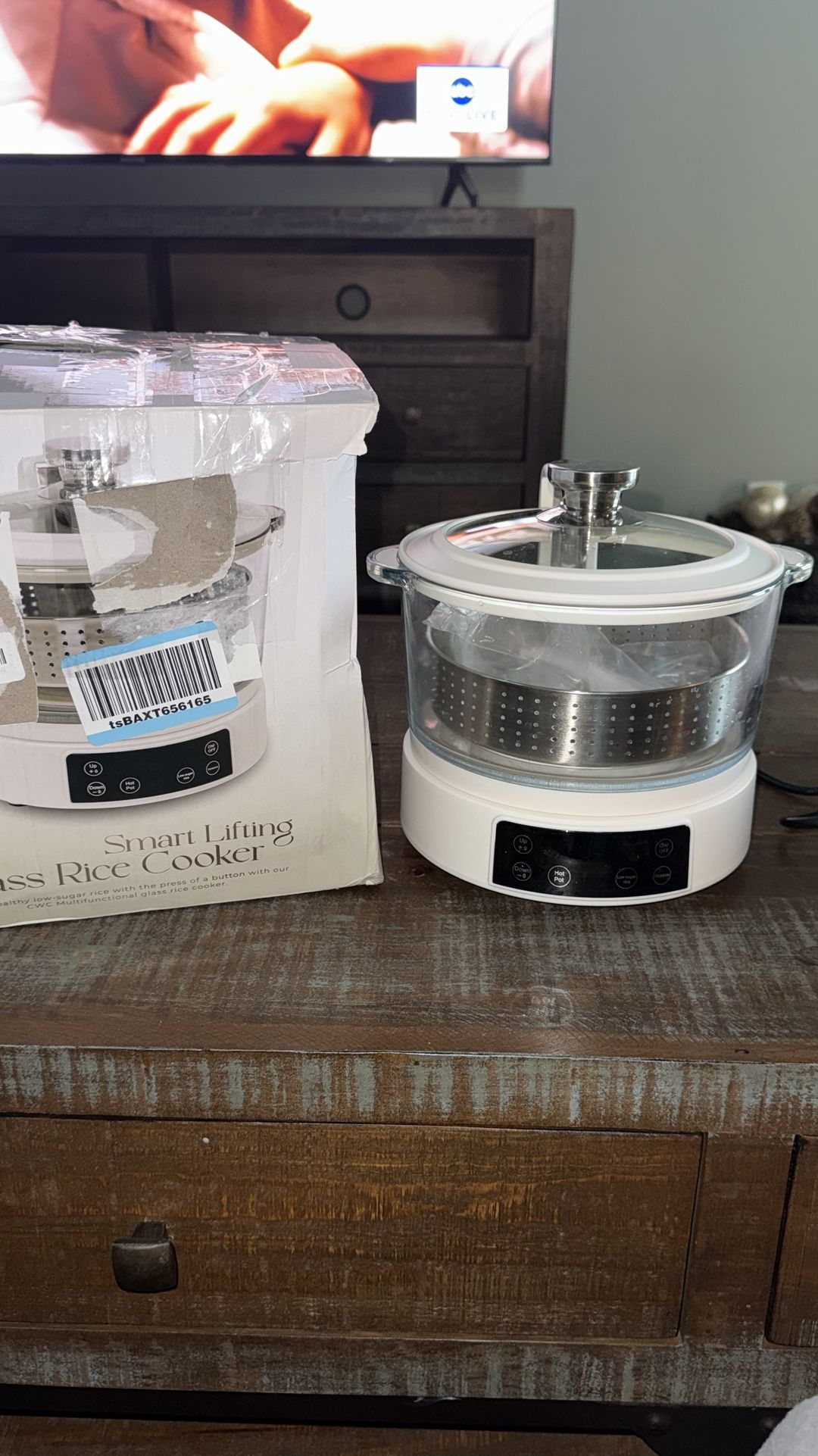Like new condition. Works perfectly — can test before purchasing. COOK WITH COLOR 3L glass rice cooker with digital panel and multi-function cooking. Designed for healthier, lower-carb rice with automatic starch separation. ✔️ Cooks up to 2 cups raw (6 cups cooked) ✔️ Auto-lifting basket for easy starch removal ✔️ Hotpot, steamer, braise & stew functions ✔️ Adjustable power settings for precise cooking ✔️ Keep warm & delay timer features ✔️ Durable borosilicate glass with clear view design Includes measuring cup and spatula.