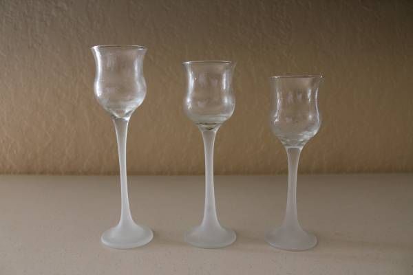 Vintage Partylite Iced Crystal Trio Frosted Stem Glass Candle Holders Set of 3 - Item Height: 7.5” and 7” and 6.5” Holds votive size perfectly Model P9248 Clean Excellent Condition - $30 for set 2 photo views shown