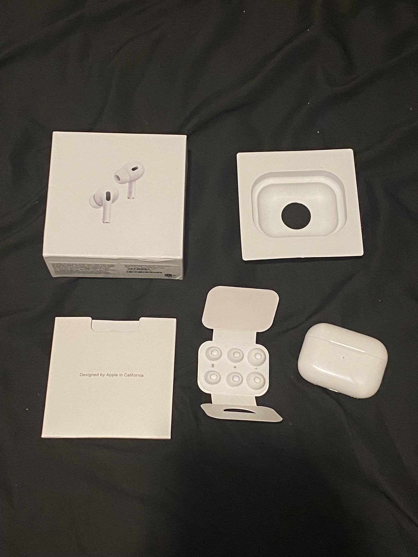 Apple wireless earbuds with charger case, eartips, and a charger. Used a few times but in pristine condition. Original price is $250 retail.