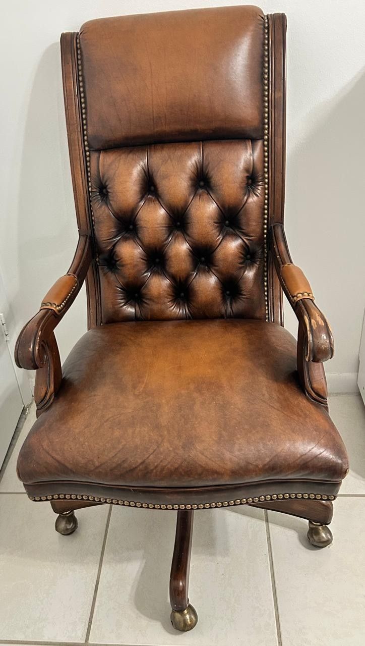 High-back swivel and reclining armchair, in genuine leather, with a solid and robust frame.