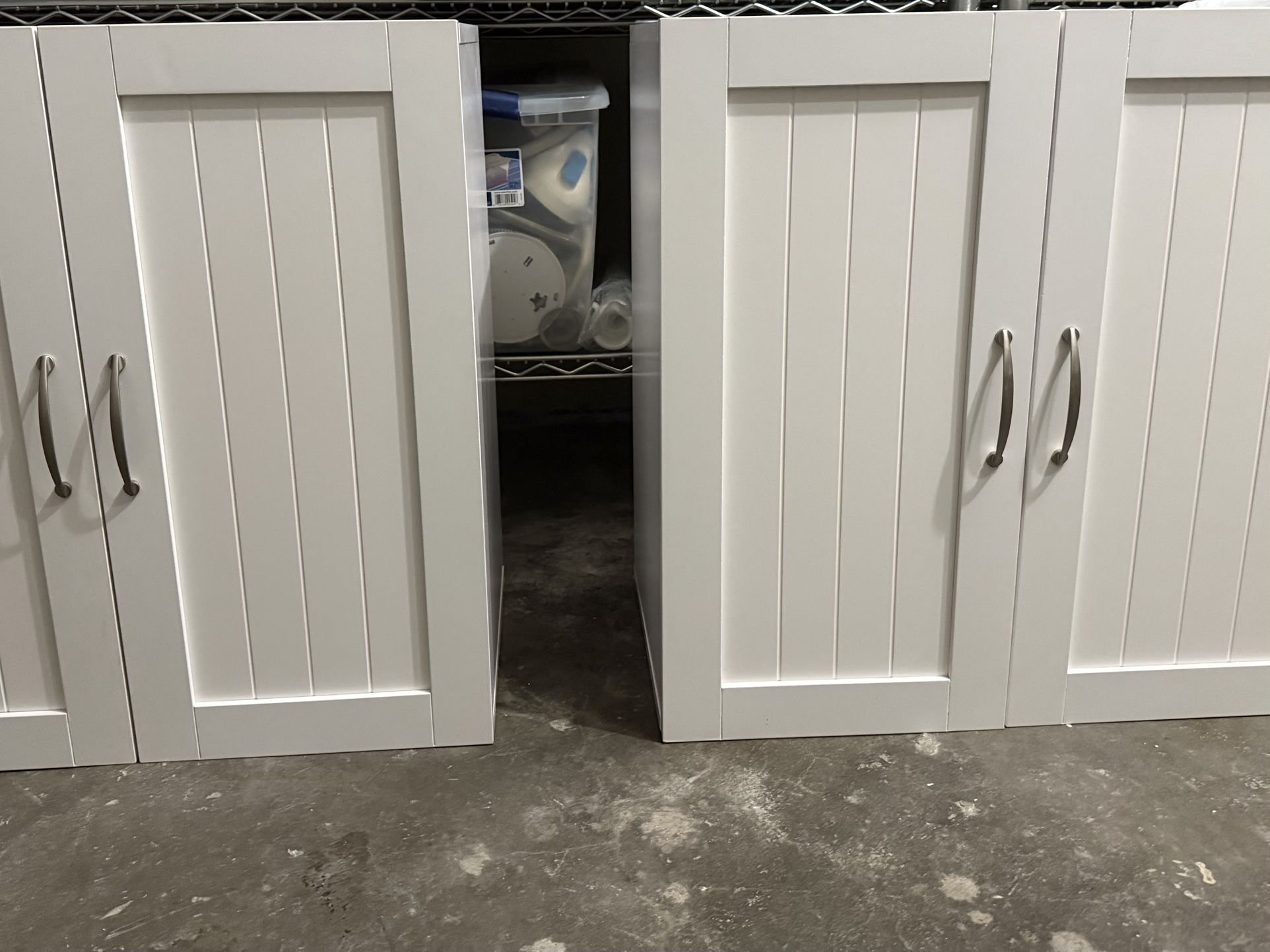 White cabinets for kitchens, pantries, bathrooms, or wherever you want to put them. Very good conditions. 50.00 each one. 11.5 in D x 23.5 in L x 23.5 W