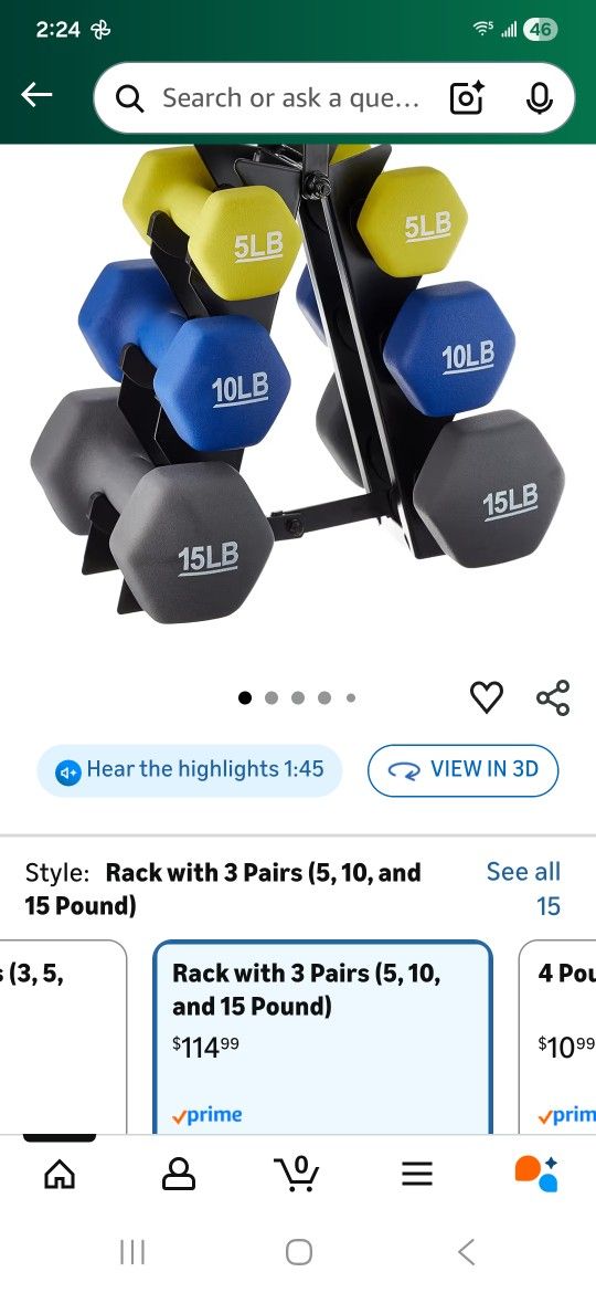 Brand new Amazon Basics Neoprene Dumbell Set. Sells for $115. 5, 10, 15 lb pairs with stand.