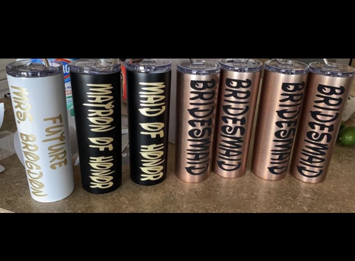 Custom tumblers. Perfect for bridesmaids, someone you love, etc. I can put most characters, names, sayings. Message me for more details!