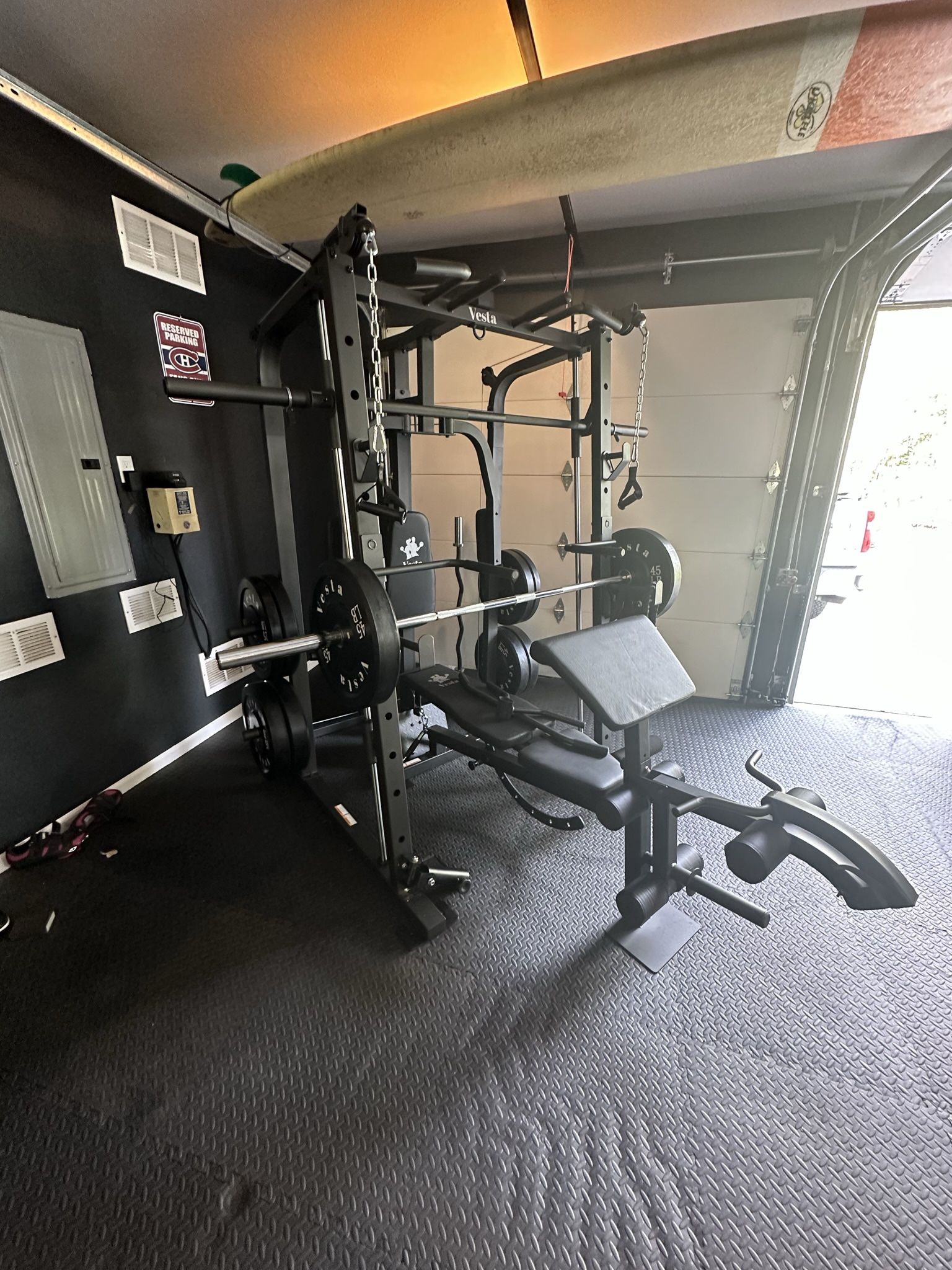 New In Box! FREE DELIVERY AT FULL PRICE!Click Profile For More Gym Listings! Only Account! Cash / Credit Cards / Finance Available! WARRANTY INCLUDED For those with less space who still want to get a great workout in the way to go is the Smith Machine SM1001. This unit offers plenty of options for your bar so you can engage in bench work, deadlifts, pull-ups and a whole lot more no matter your height or capabilities. This unit includes a bench to capitalize on even more of your normal workout needs. You’ll be able to engage with leg workouts especially using the included leg developer. All you need is a small space to install the unit and some plates that will help you amp up the intensity. Features: Smith With Adjustable Safety Height Integrated Weight Holder Olympic Barbell Holder Spotter Arm Cable Pulley System Pull Up Bar Dip Bar Vertical Olympic Barbell holders Adjustable Bench (Incline) Leg Developer Station Height Adjustable Curl Station Ankle Strap Specifications: Bench with leg developer included Small footprint Assembled Dimension: 72" x 83.5" x 85" Upgrades or Add Ons •Free Switch to 230lb Bumpers Plates 45s/35s/25s/10s •$40 3ft by 3ft Rubber Mats •$90 4ft 20lbs Curl OLYMPIC WEIGHTS GYM EQUIPMENT OLYMPIC STANDARD WEIGHT SLED PUSH SLED WEIGHTS WEIGHT PESAS SQUAT RACK POWER CAGE SMITH MACHINE BENCH PRESS INCLINE DECLINE BARBELL BAR HEX BAR BUMPER PLATES ADJUSTABLE BENCH FLAT BENCH BENCH DUMBBELLS DUMBELL ADJUSTABLE DUMBBELLS KETTLE BELLS DIP STATION PULL UPS PULL DOWN BATTLE ROPE BOWFLEX POWERTEC POWERBLOCKS HOIST BODY SOLID ROGUE FITNESS EXERCISE
