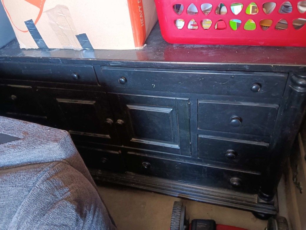 Big black dresser comes with a mirror attached to it in good condition just a little dirty from the dust.