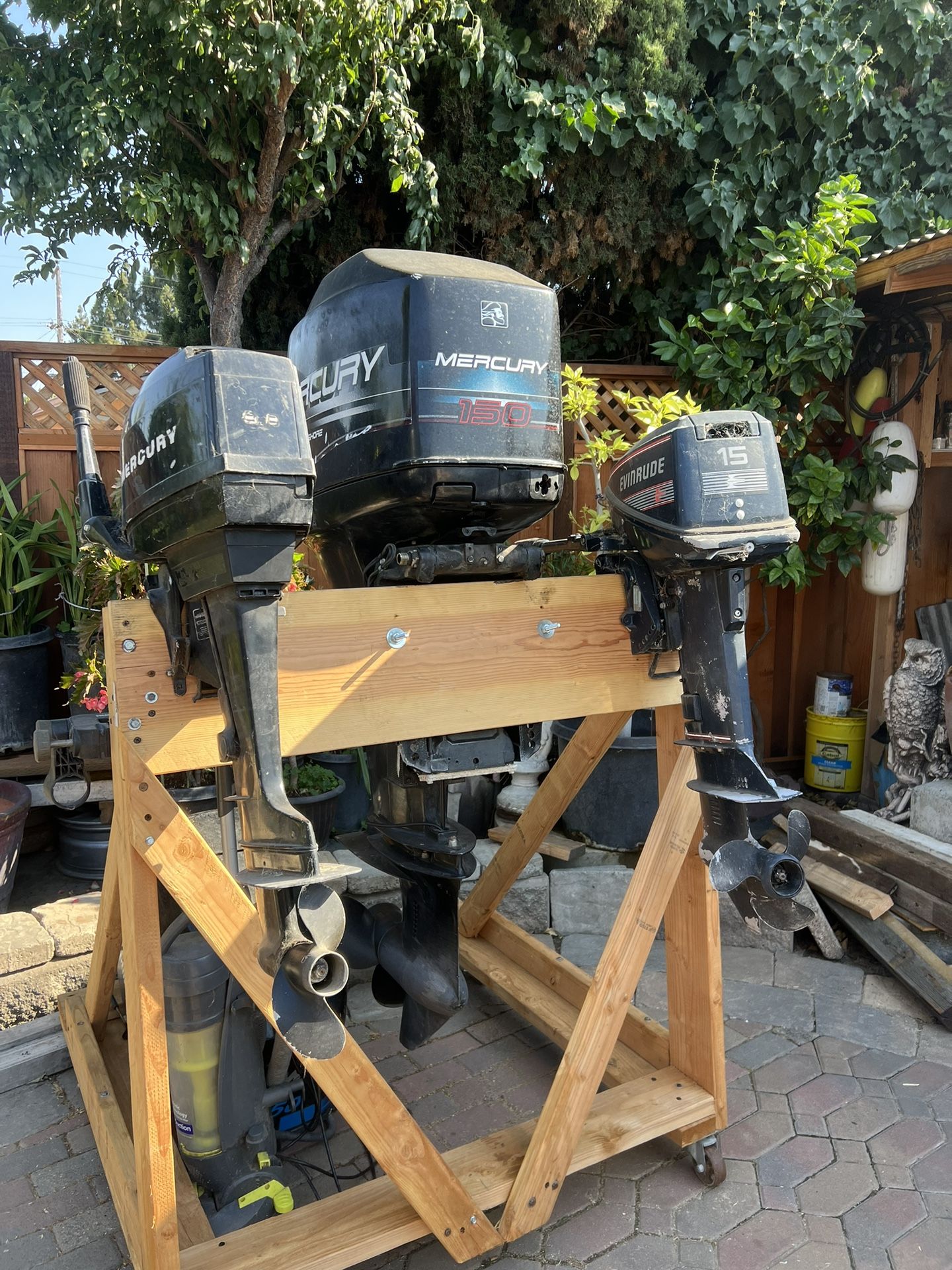 Mercury 150HP 2 stroke Compression is good at 103 when taking it off Never left me stranded Only selling cause got the chance to upgrade 1500 Mercury 9.9hp 2 stroke Selling as is 300 Evinrude 15hp 2 stroke Pull to start was running when it was on the boat but also had the chance to upgrade 500 Sold