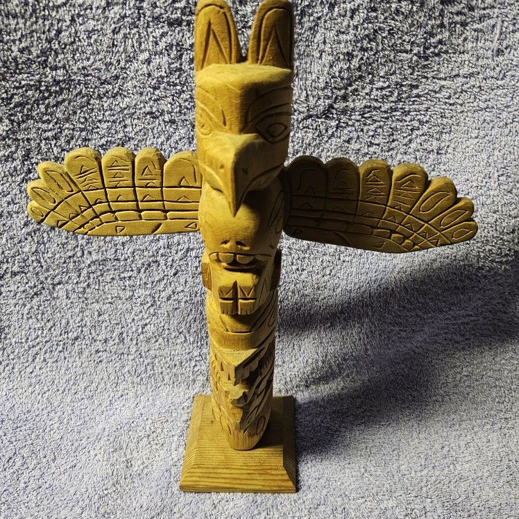 Hand carved wood totem. Stands about 1ft tall.