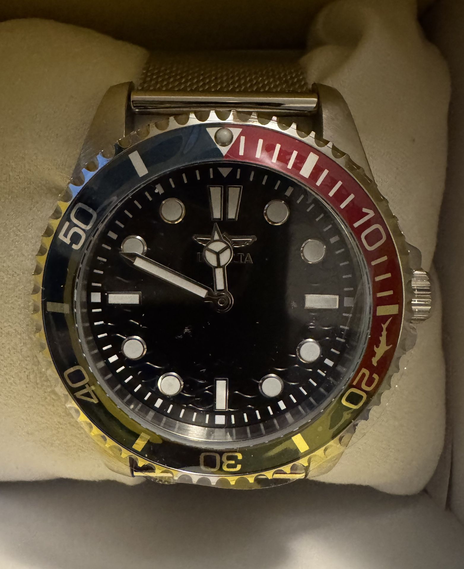Watch Invicta Pro Diver Men 43 Stainless steel Brand New in Box never worn BRAND Invicta MODEL 47176 GENDER Men MATERIAL Mesh COLOR Steel TYPE WATCH Quartz WATER RESISTANCE 100 CALENDAR Date GLASS MATERIAL Flame Fusion Lot# 14