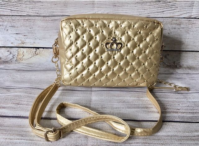 Girls Gold Quilted Princess Crown Crossbody/Shoulder Purse. Measures 8” x 3” x 6”. NWT. #gold #accessories #princesscrown #crown #princess #Quilted #crossbody #girlspurse