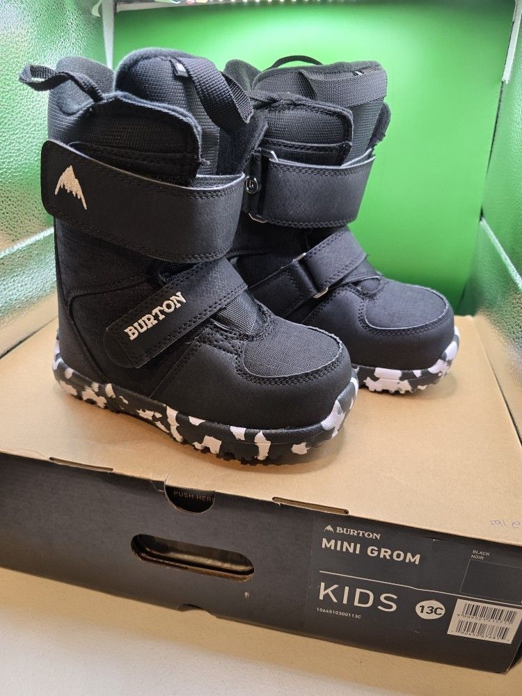 Burton Mini Grom Kids Snowboard Boots Black Size 13C With Original Box.