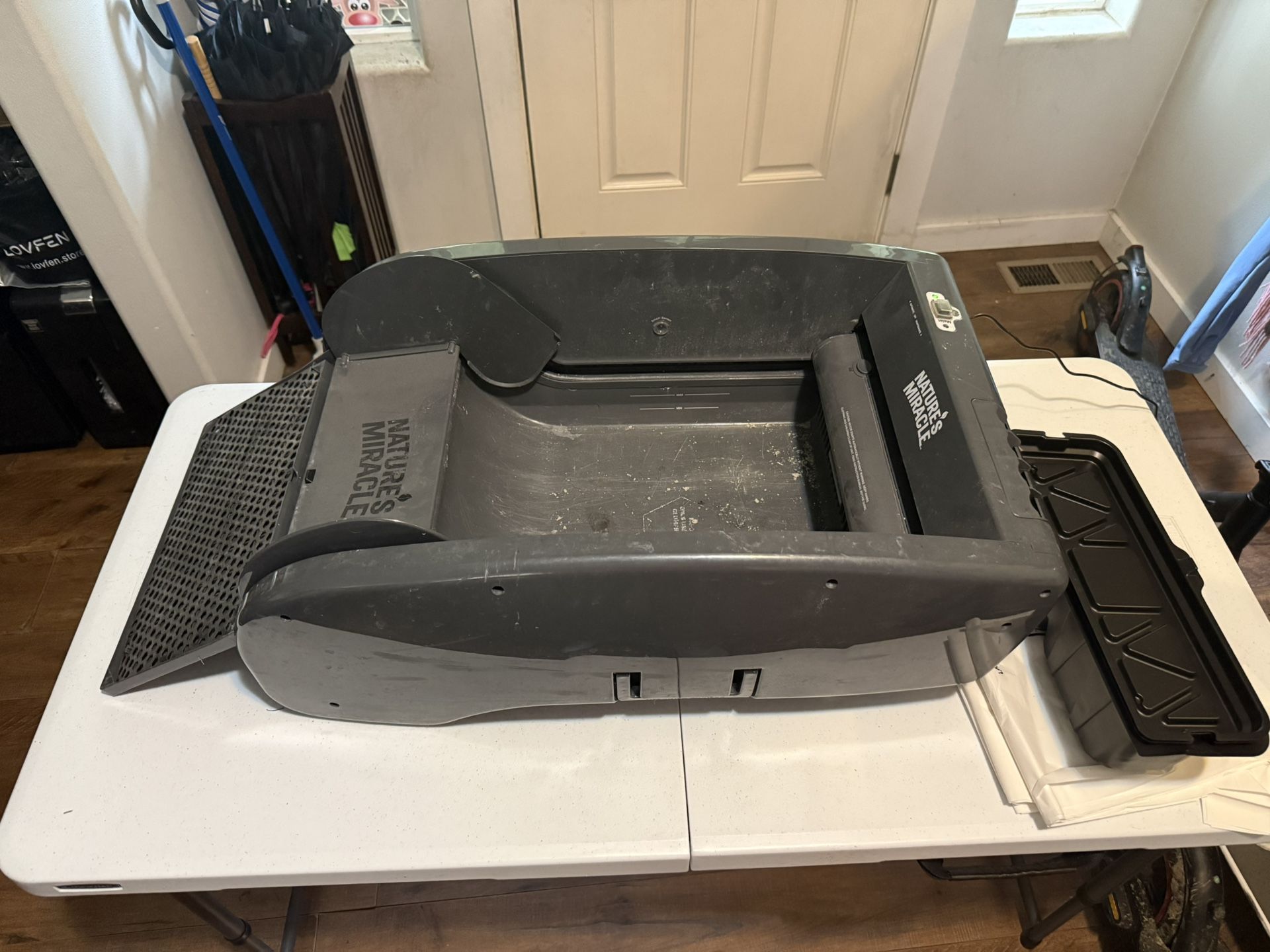 Selling a Nature’s Miracle Automatic Self-Cleaning Cat Litter Box in good working condition. This litter box automatically scoops waste after your cat uses it, helping keep the litter area clean and reducing odors. Ideal for busy households or anyone looking for a low-maintenance solution. Features: • Automatic self-cleaning rake system • Odor-control design • Uses standard clumping litter • Large size suitable for most cats • Easy to set up and clean Condition: Gently used, clean, and fully functional. Normal cosmetic wear from regular use. Included: • Automatic litter box unit • Waste receptacle Pickup/Delivery: Local pickup. Reason for Selling: No longer needed. Price $100.00