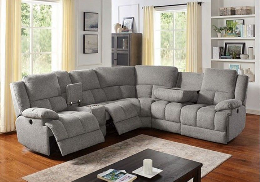 βπ« We do not have a showroom. We deliver directly from the manufacturer to your home π . π Delivery is only $40 π οΈ Assembly is an extra charge. Price on assembly depends on which item you order! π΅ We accept cash on delivery Mattresses are sold separately π₯We are voted #1 on offer up, please also view other options on our page!!! CM6345 It's the corner sofa set where all the bells and whistles - power recliners, a built-in cupholder, a dropdown table - combine with absolute comfort for the ultimate in a convenient lounging experience your guests are sure to enjoy. Have a movie night and fully exploit the fun features this set offers! Transitional Gray Fabric, Solid Wood, Others Storage Compartment Power Recliners USB Outlet Stainless Steel Cup Holders Dimensions: Sectional 118"L X 104"W X 40 1/2"H (SEAT HT: 19 1/2", SEAT DP: 22")