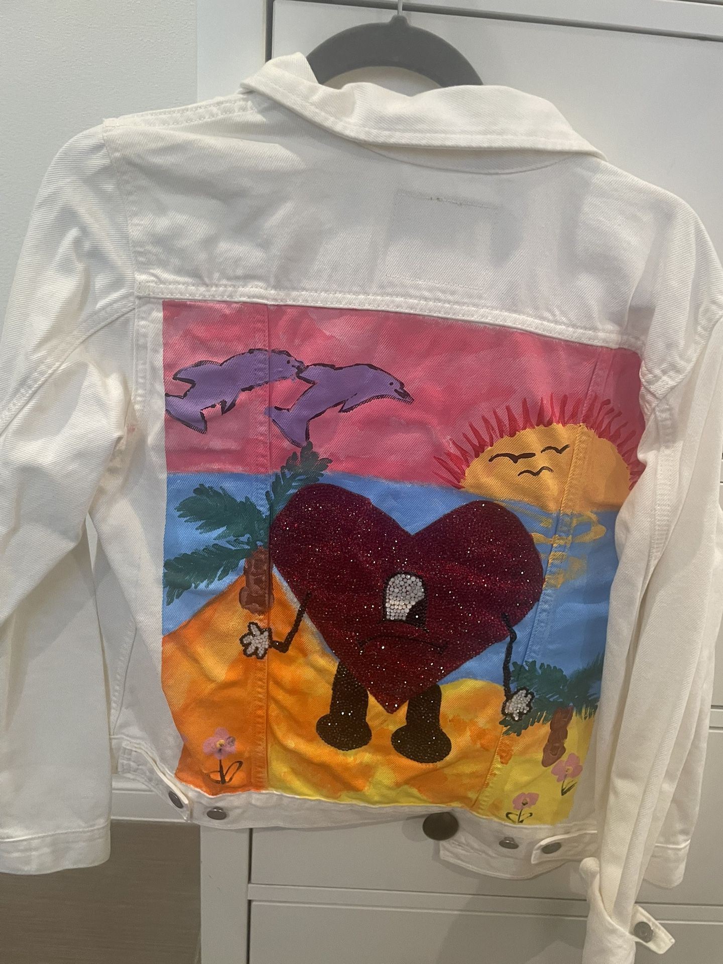 Hand painted design. Size LARGE. Pick up only. Hand glued gems