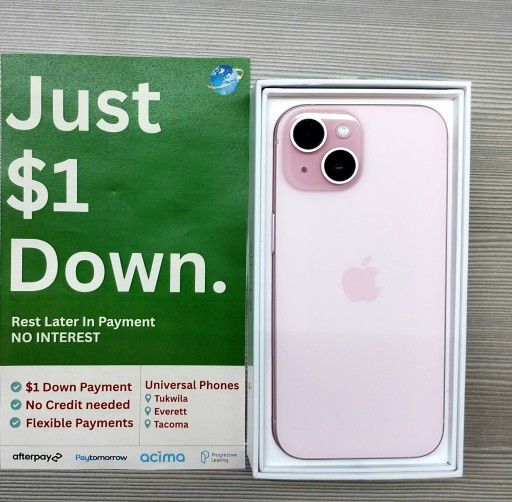 Apple IPhone 15 128gb Unlocked, FREE Smartwach/ Headphones. Pay $1 Today Rest in payments. NO CREDIT NEEDED FINANCING