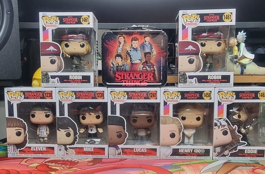 Eleven #1238 Mike #1239 Lucas #1241 Henry #1458 Eddie #1462 Robin #1461 Robin #1461 Stranger Things Lunchbox with gummies Here's a lil set I put together for an awesome fan π!