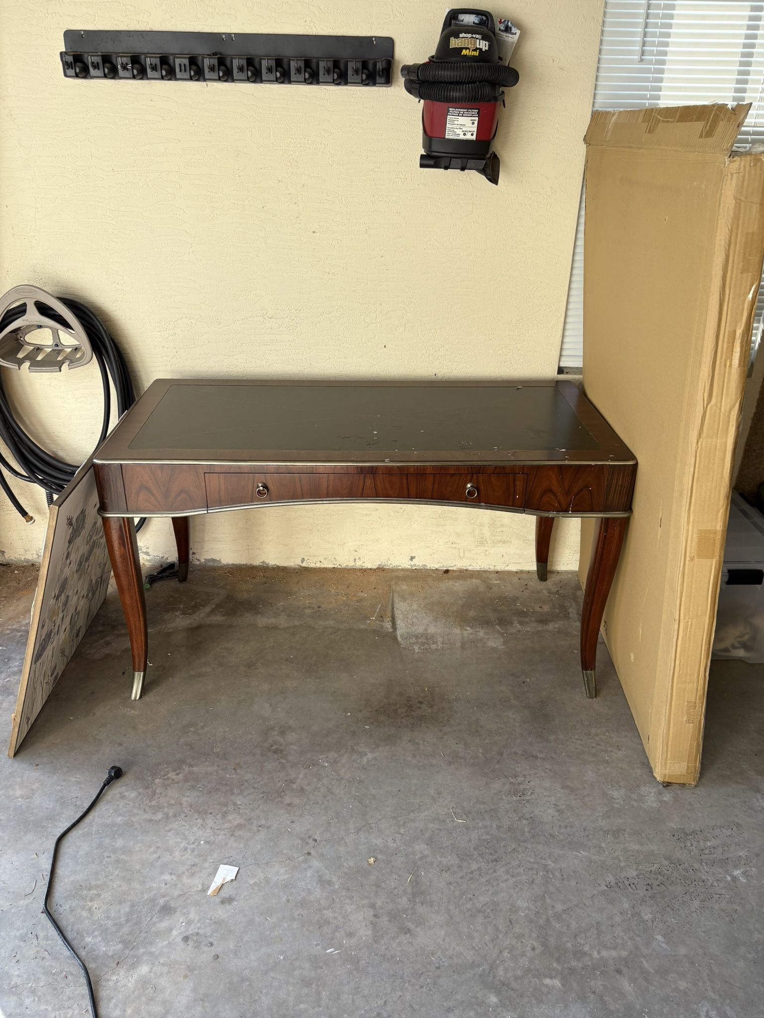 Wooden desk. Slight wear. One sliding drawer.