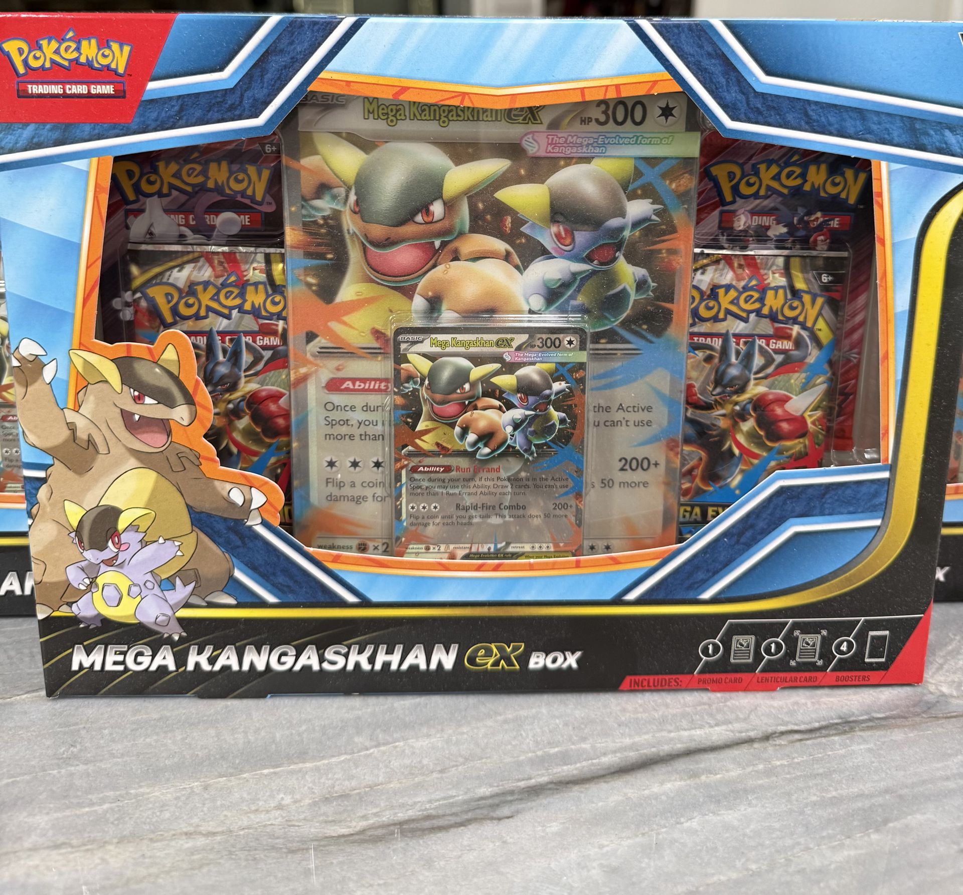 Pokemon Mega Kangaskhan Box -READ FULL LISTING 2 Destined Rivals Packs ($11 per pack X 2) $22 2 Mega Evolution Pack ($9 per pack X2) $18 Market + Taxes + Shipping if you buy Online. Each Box $40 No Rush to Sell Ready to Rip $$$ 7 AVAILABLE